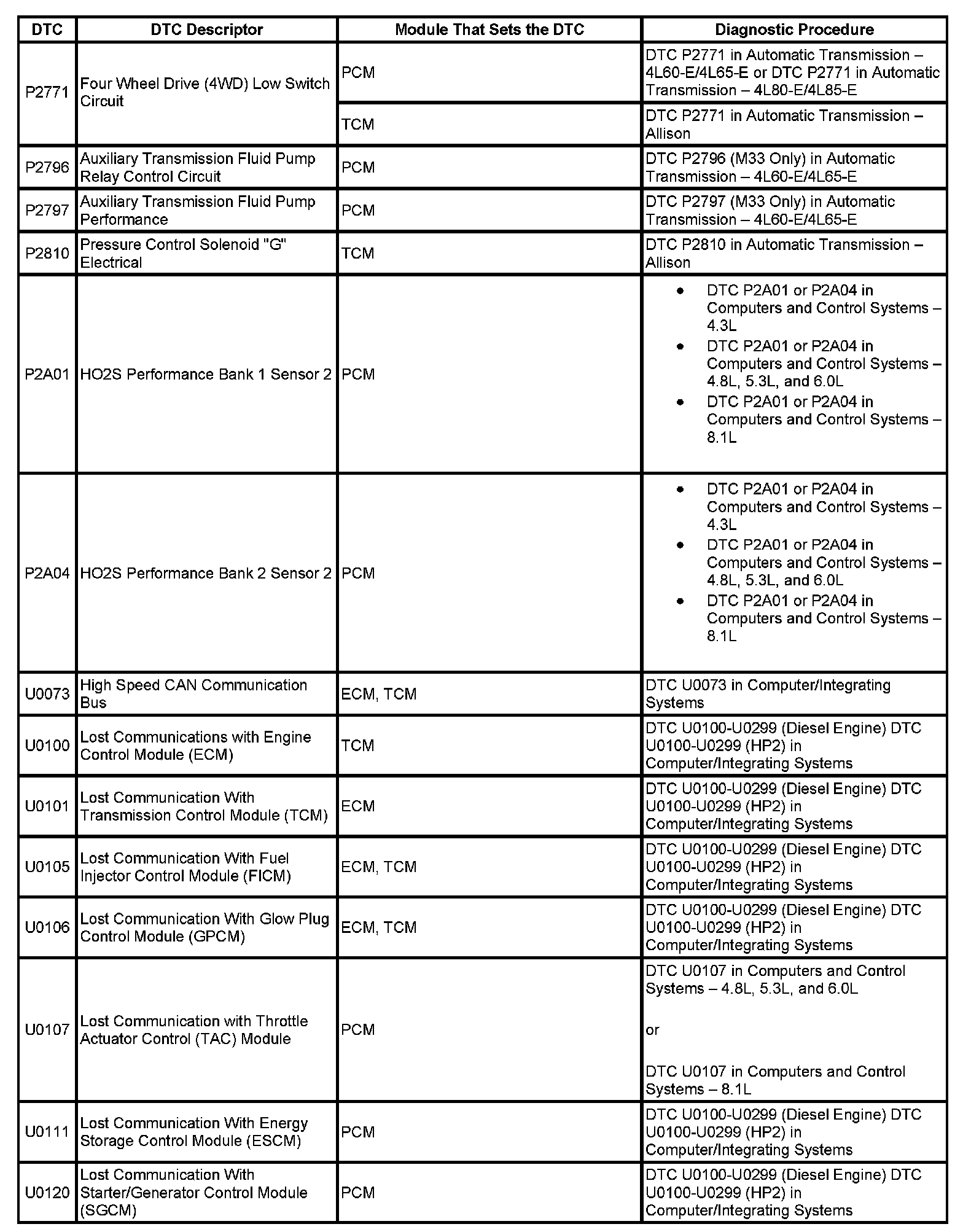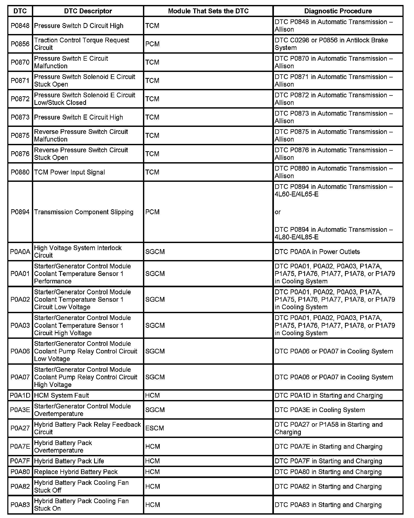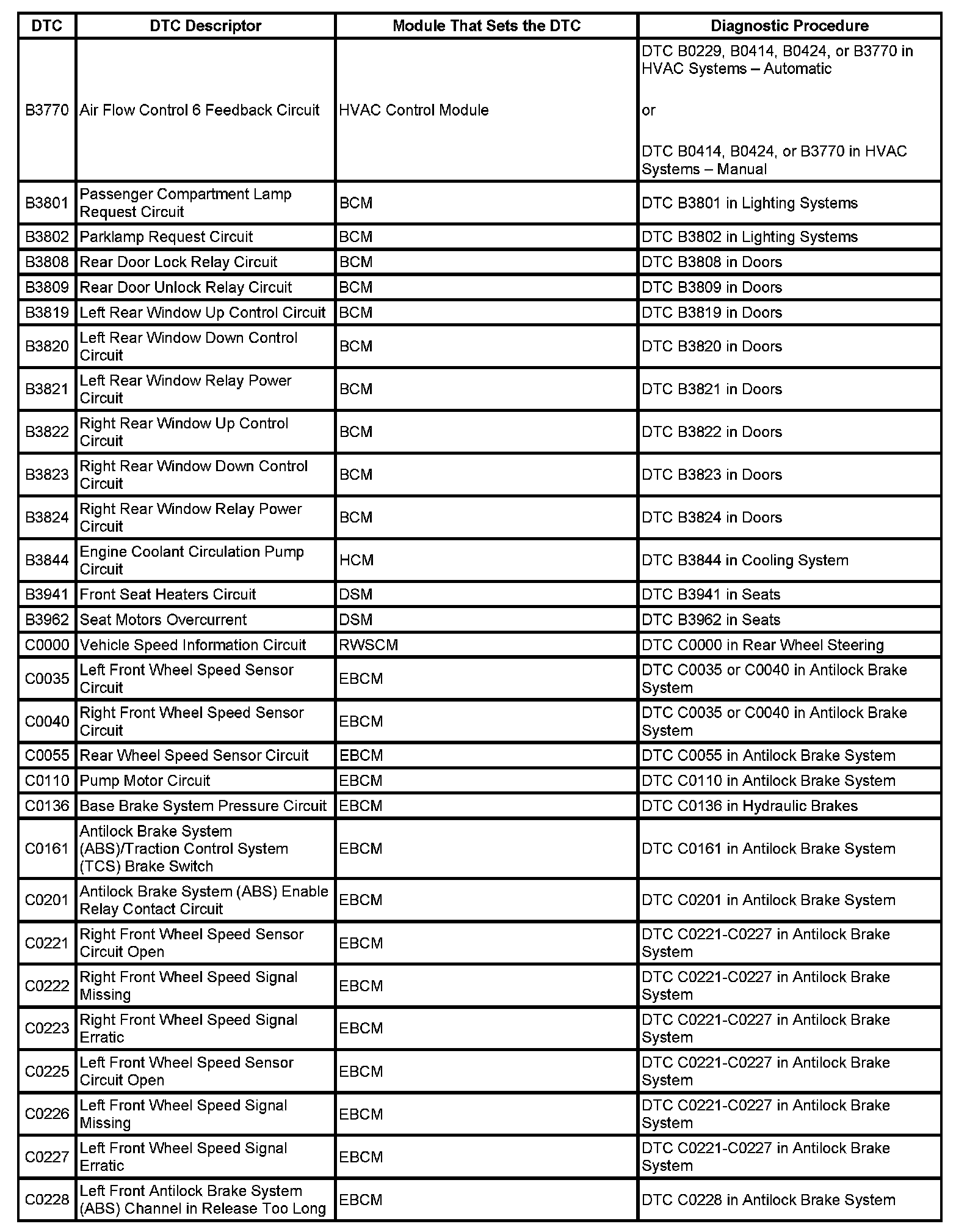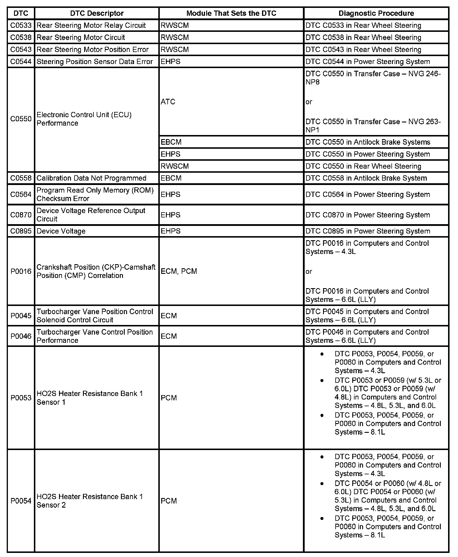 This master DTC list includes all applicable DTCs in alphanumeric order with descriptors.