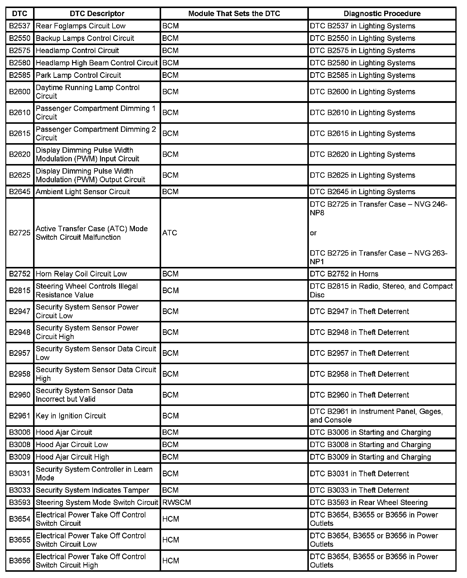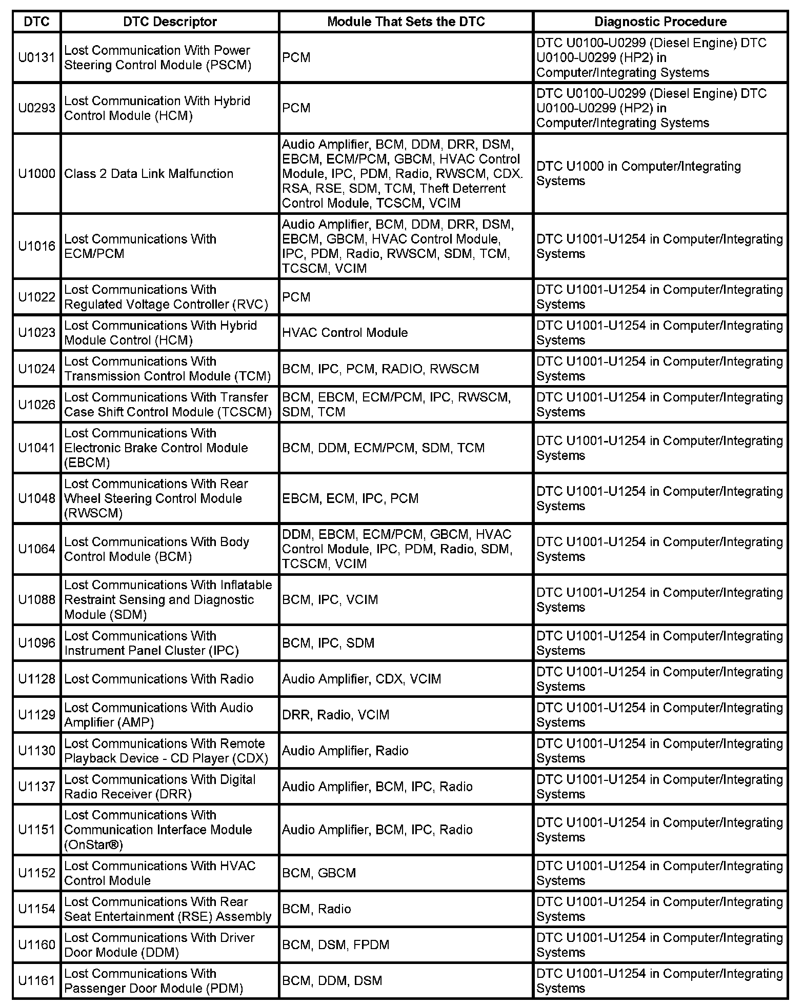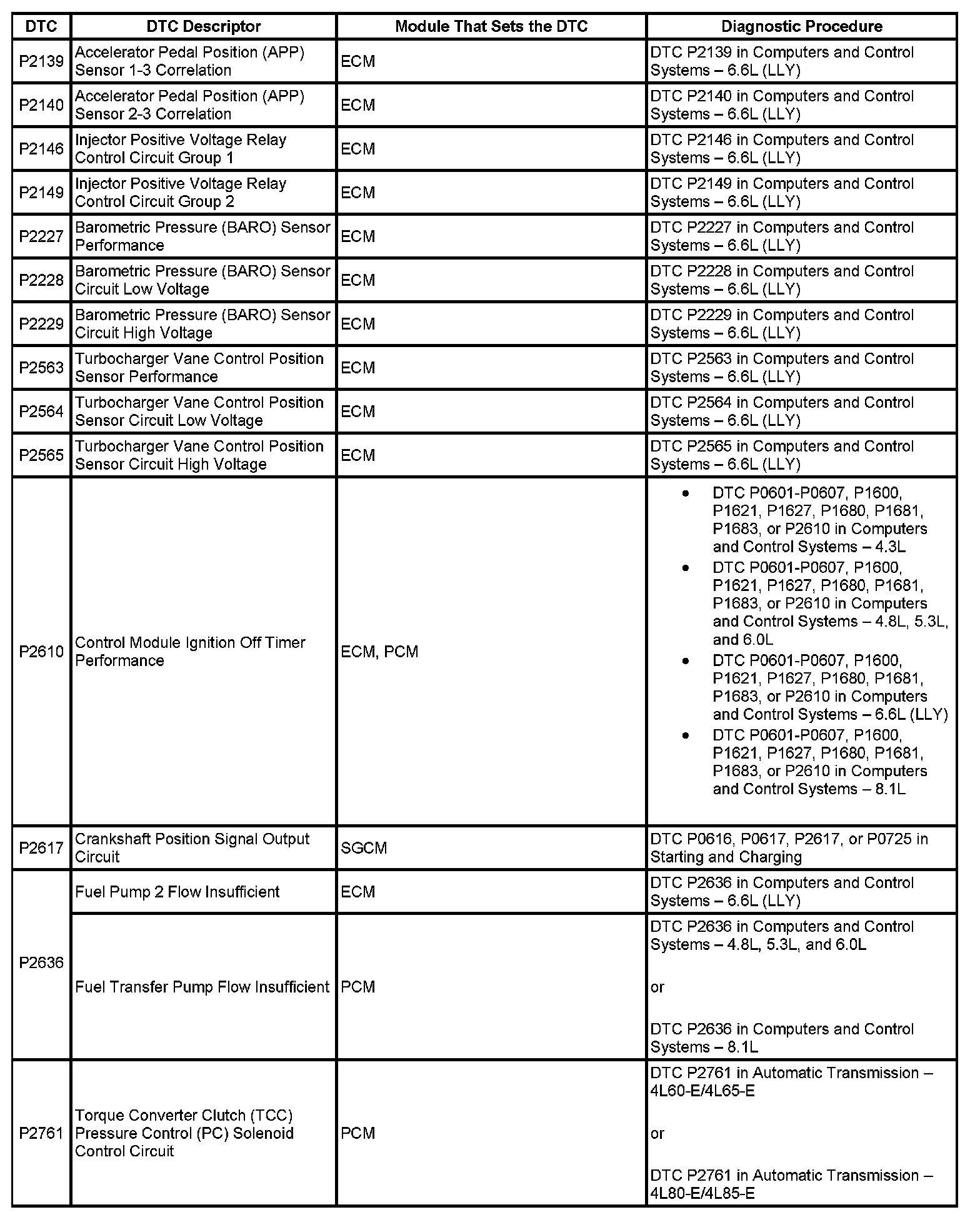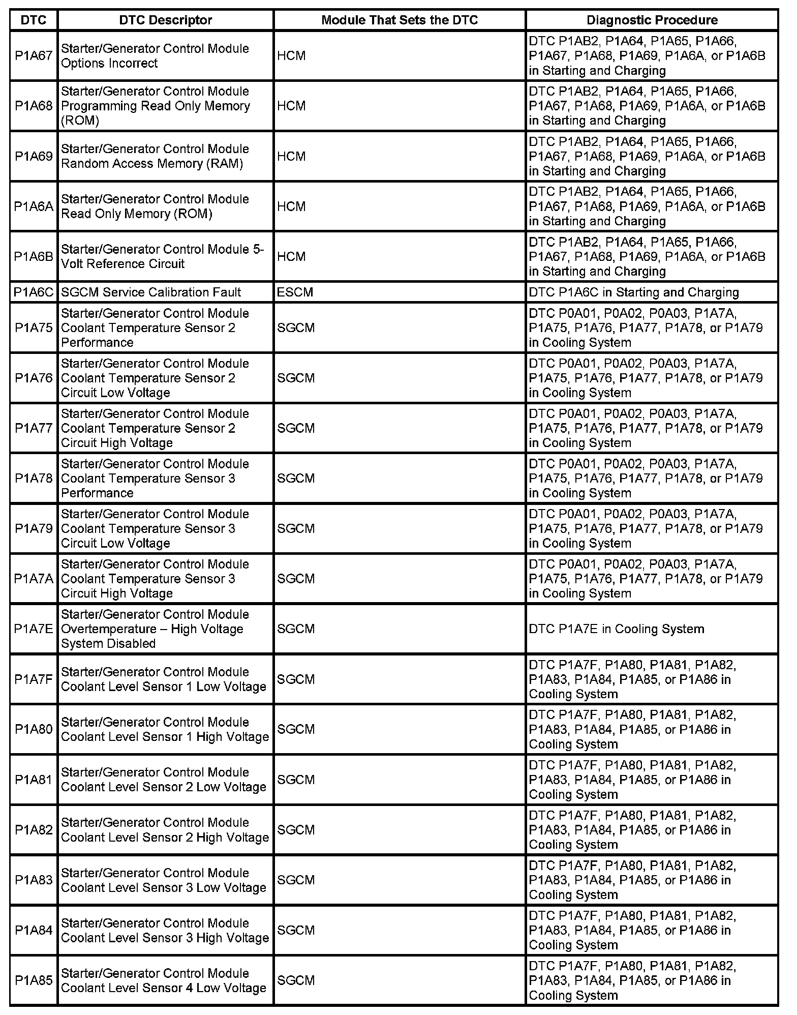 This master DTC list includes all applicable DTCs in alphanumeric order with descriptors.