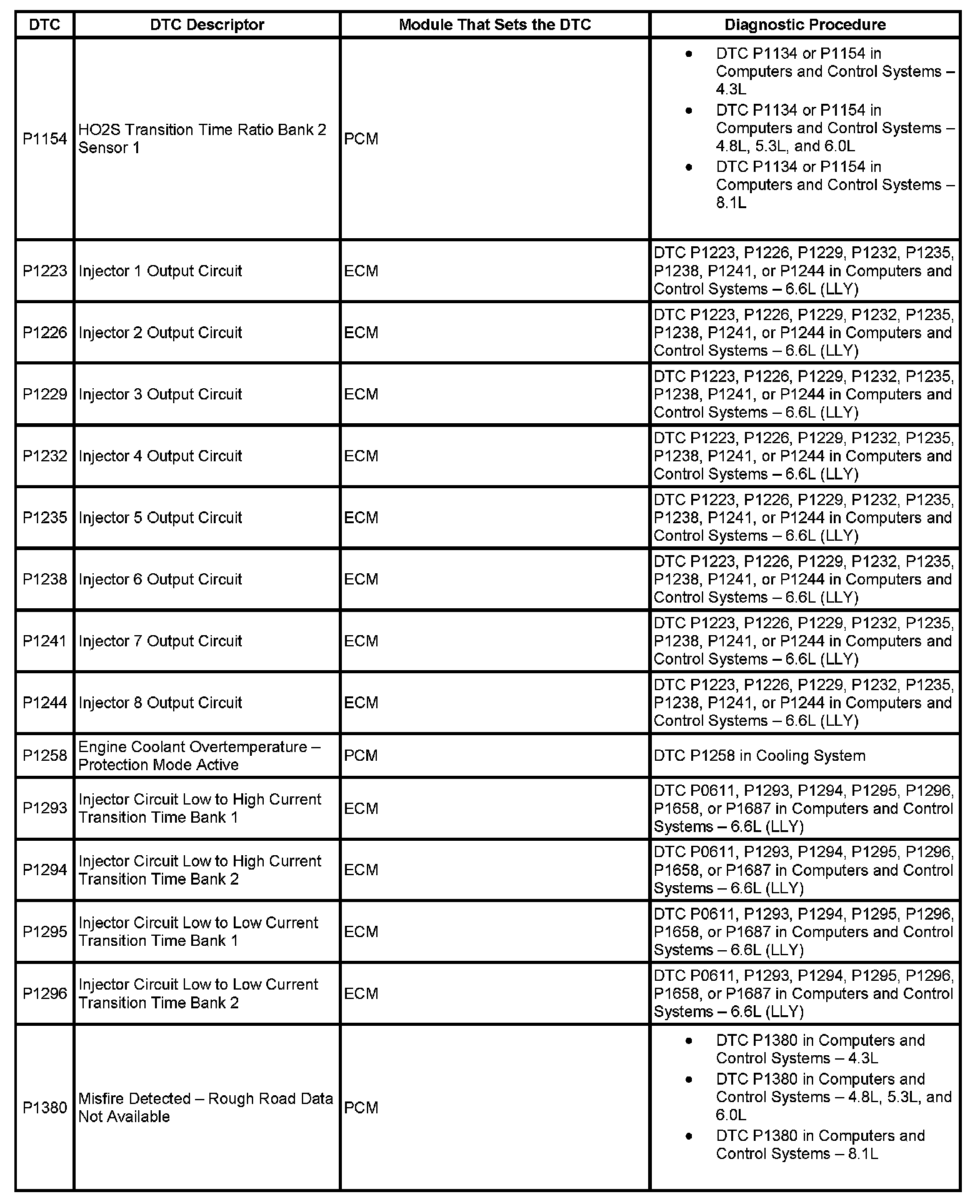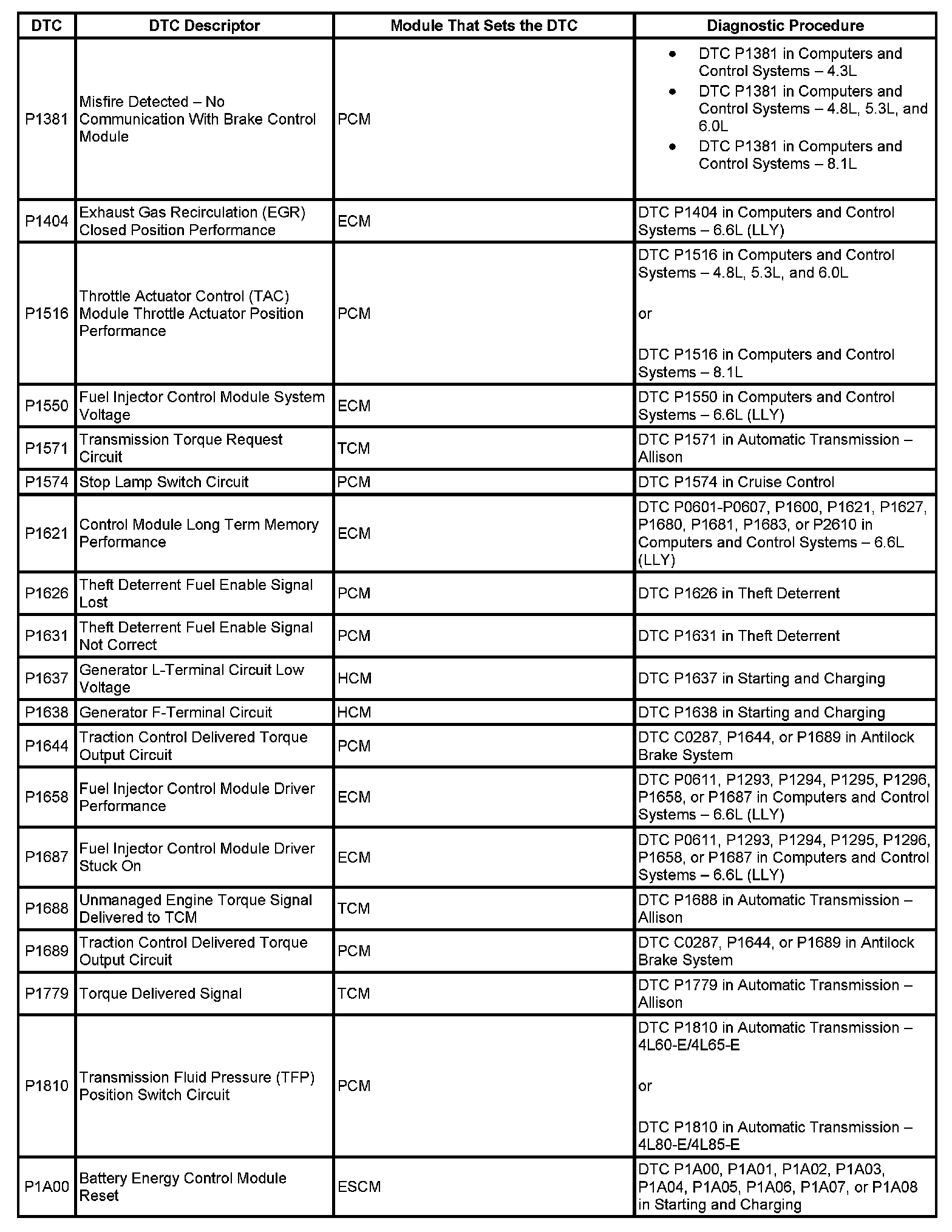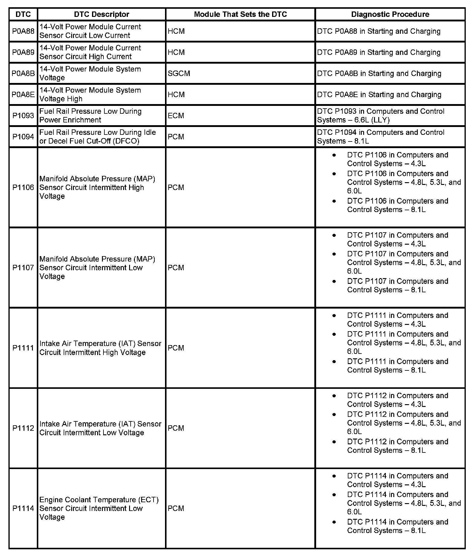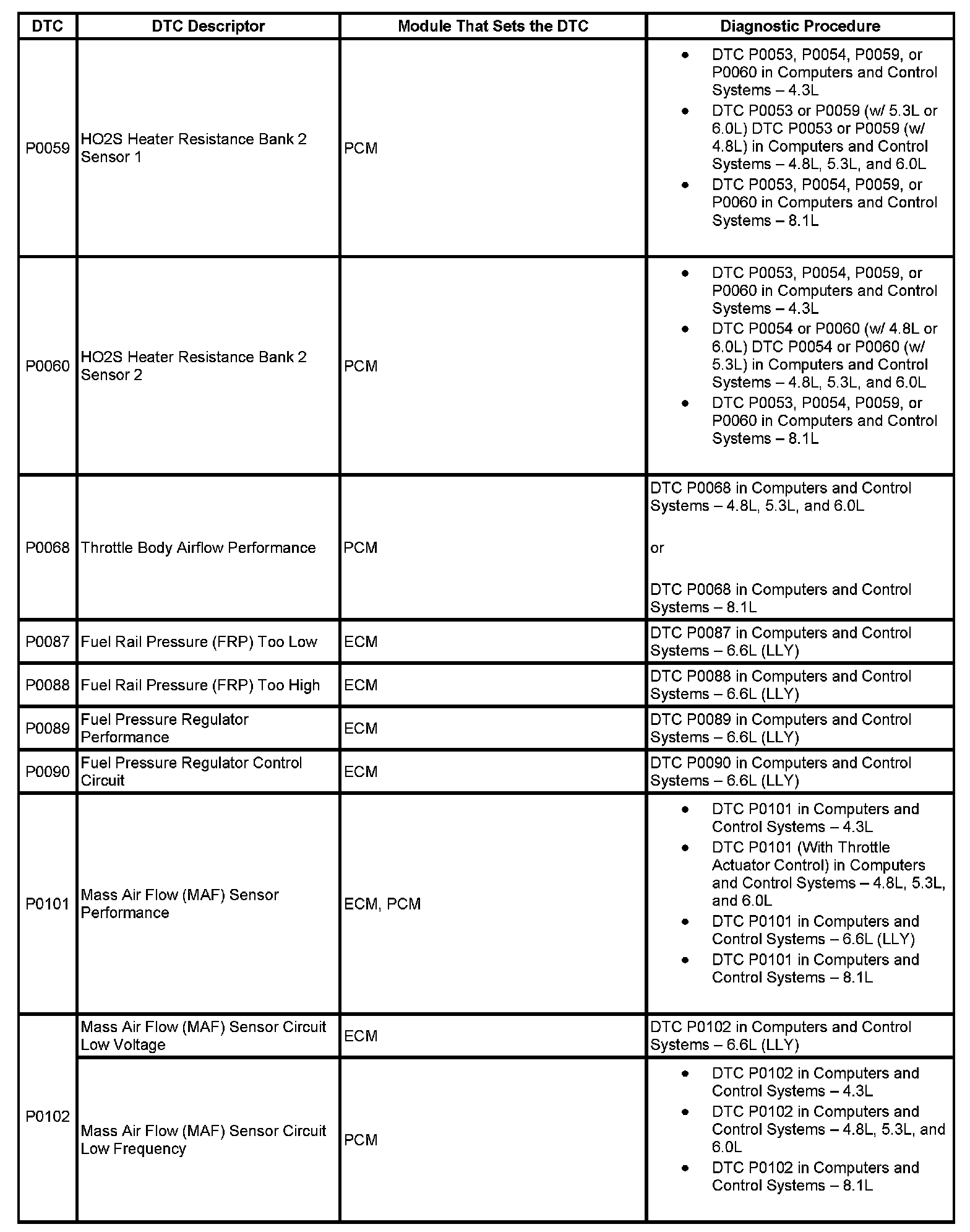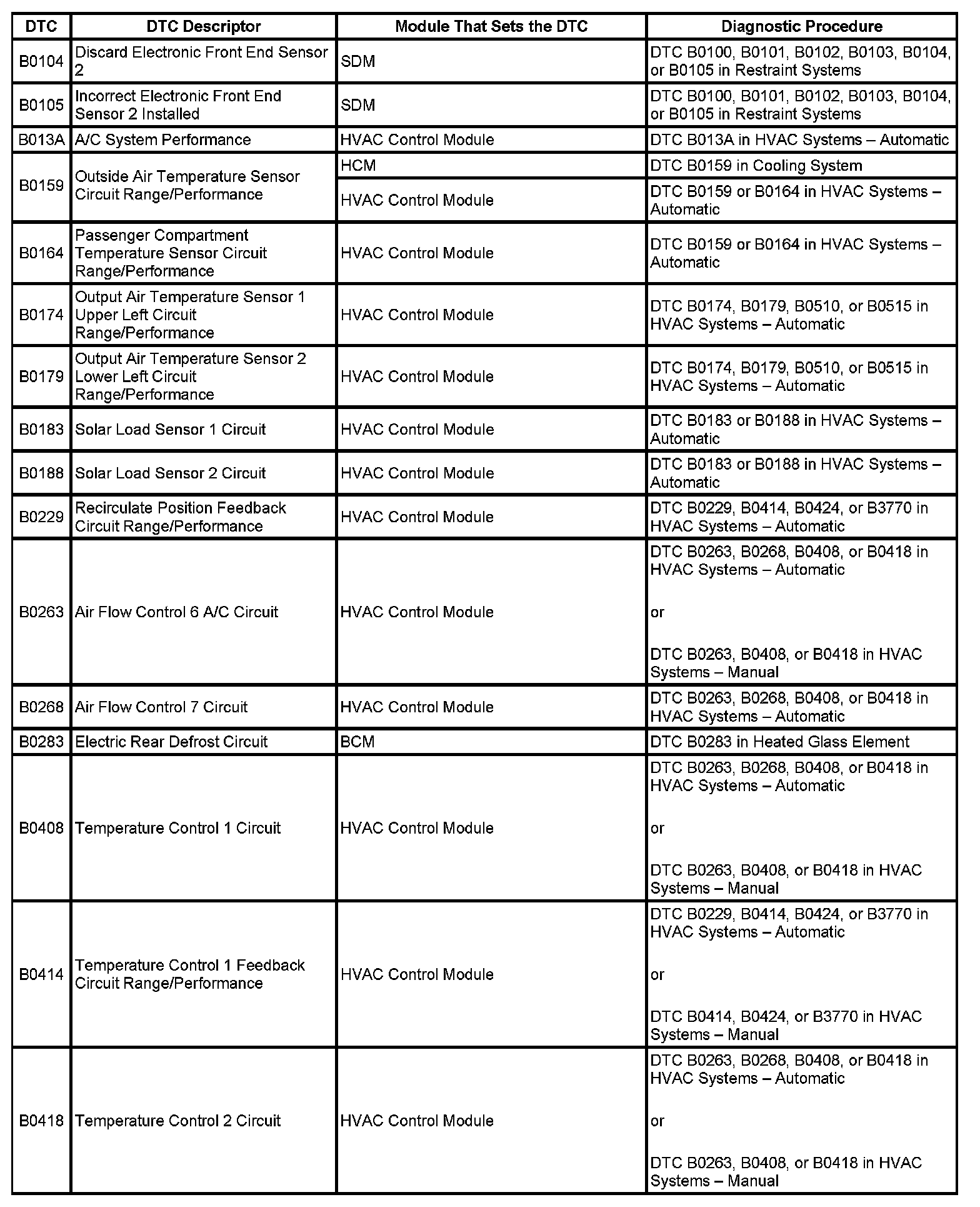 This master DTC list includes all applicable DTCs in alphanumeric order with descriptors.