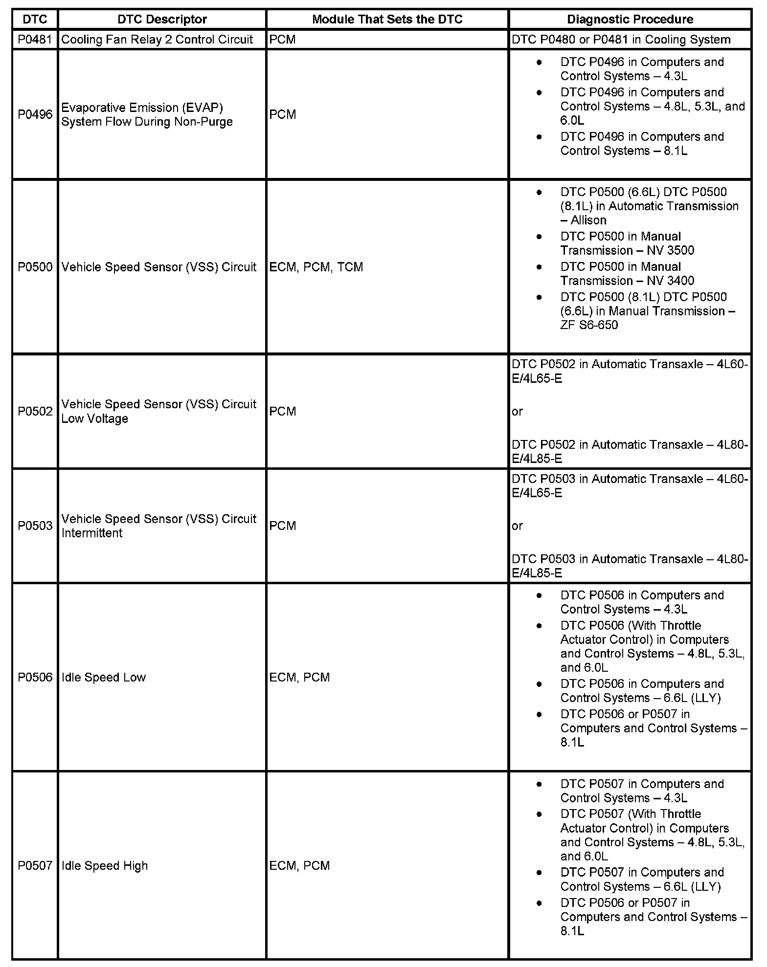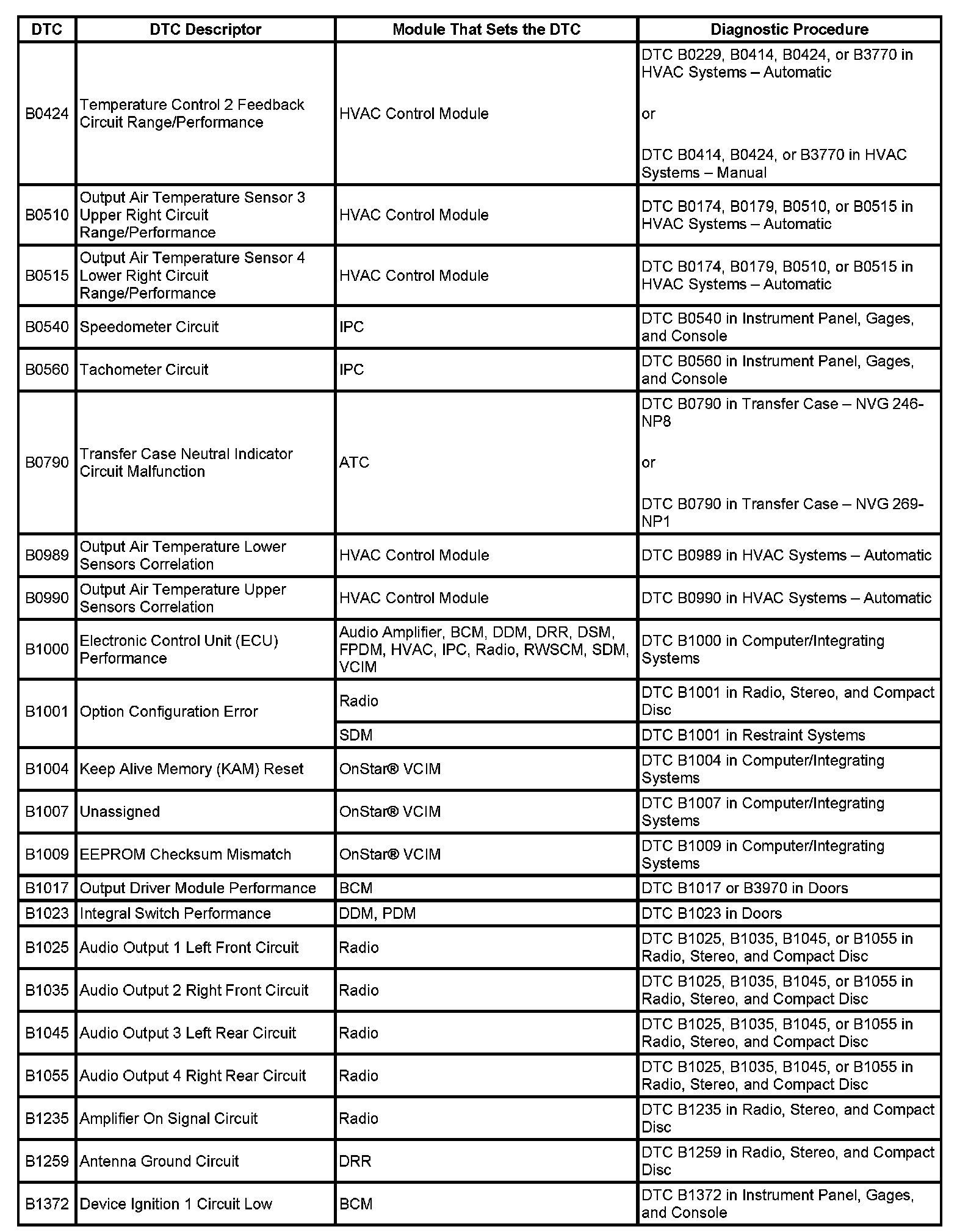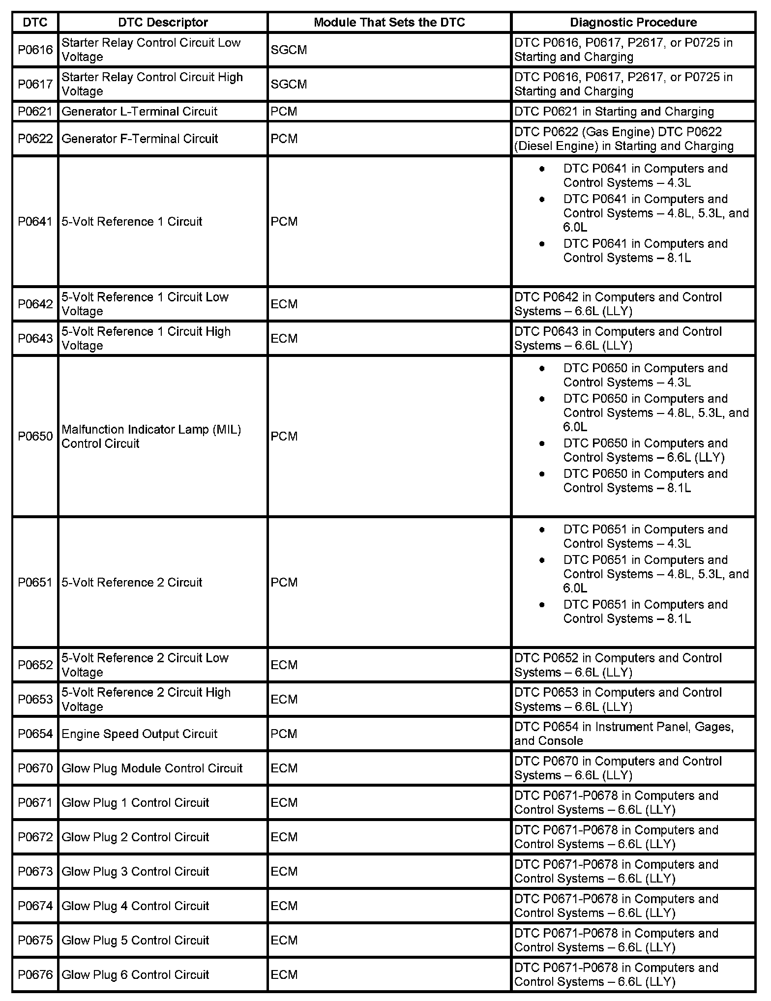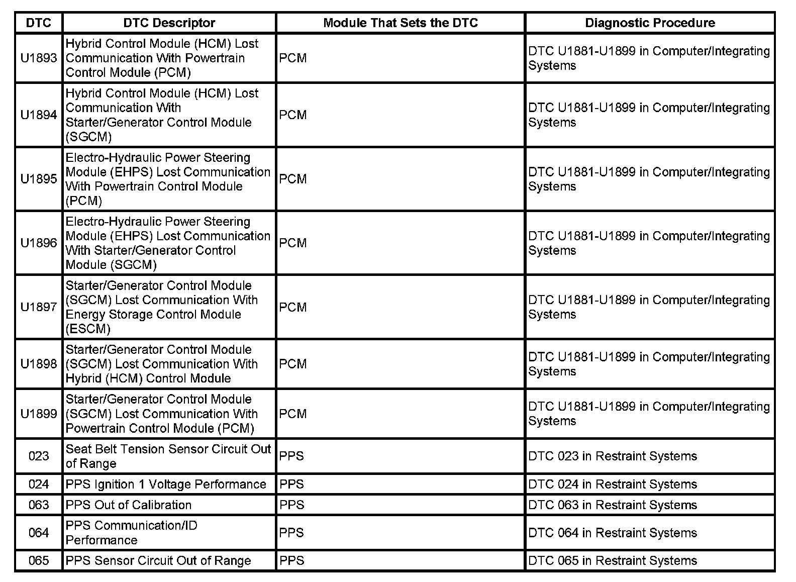 This master DTC list includes all applicable DTCs in alphanumeric order with descriptors.