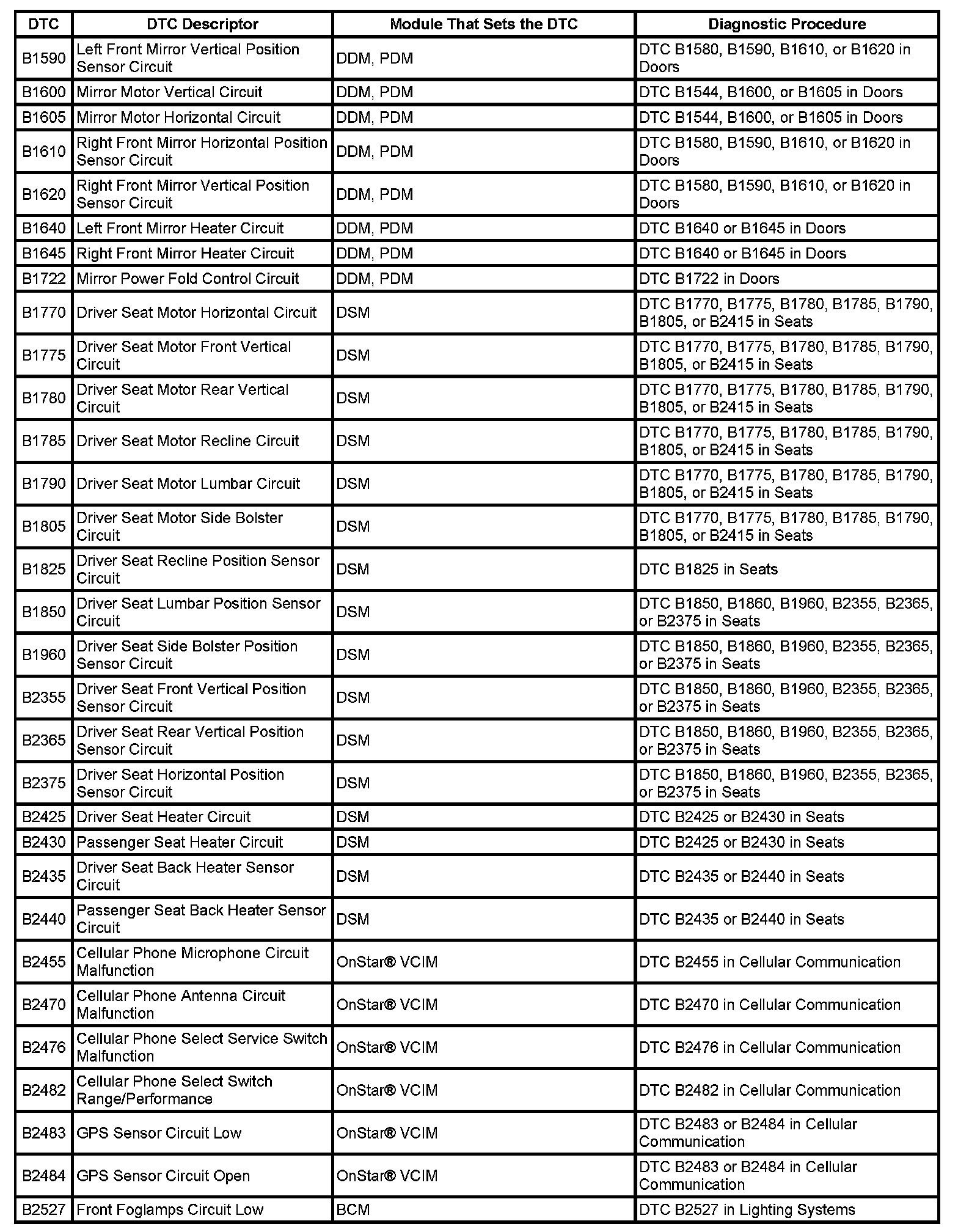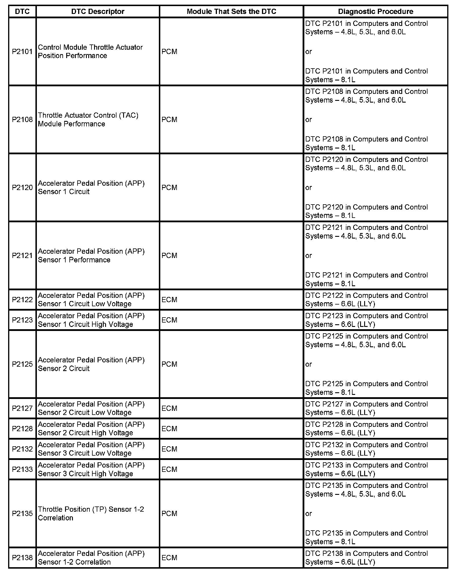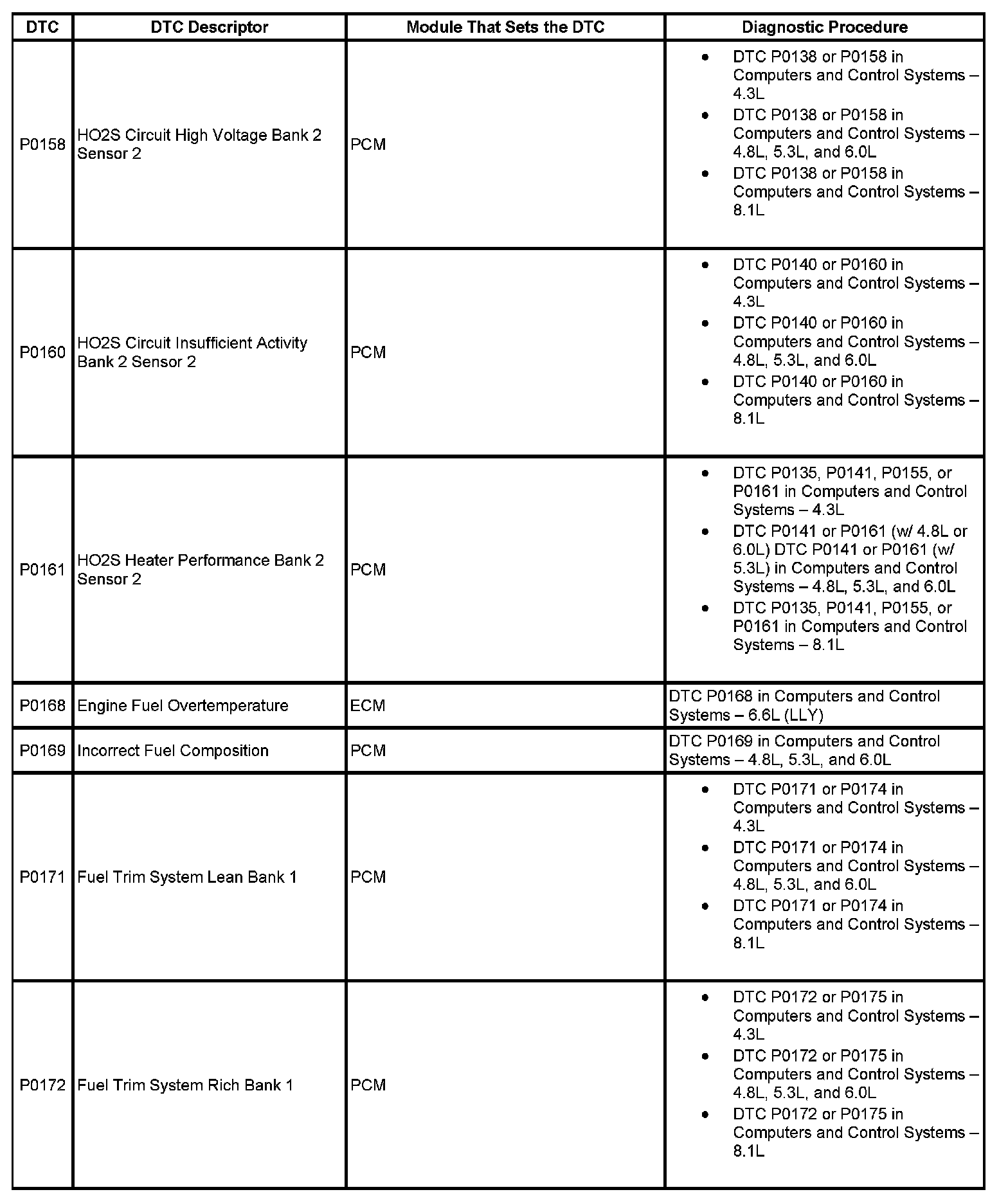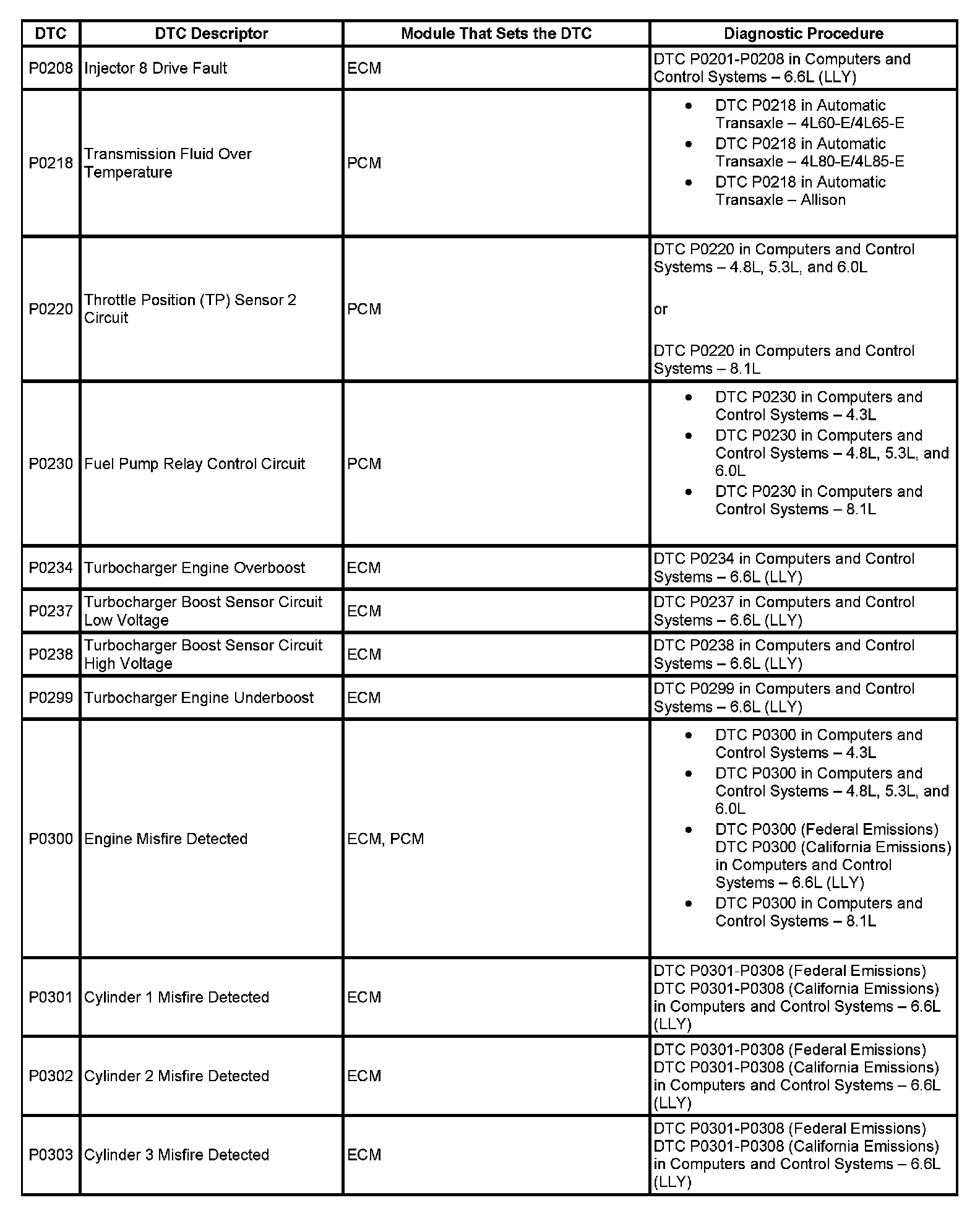 This master DTC list includes all applicable DTCs in alphanumeric order with descriptors.