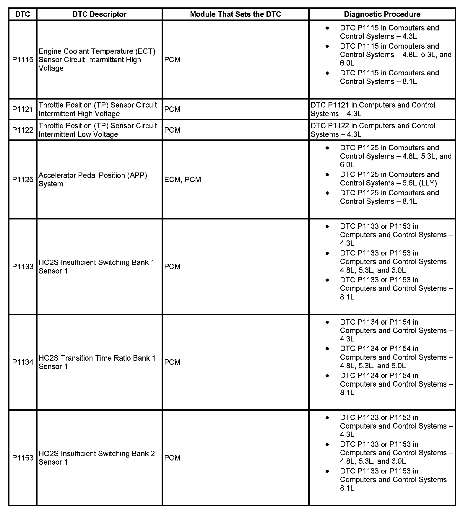 DTC's P1115-P1153: