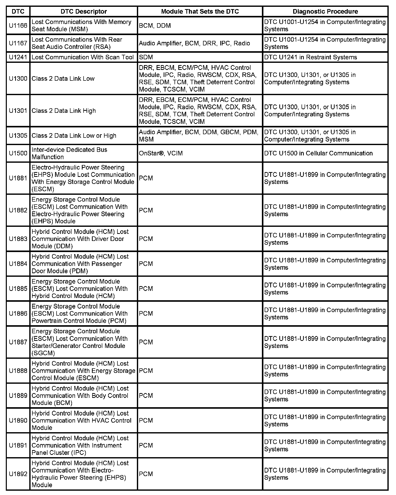 DTC's U1166-U1892: