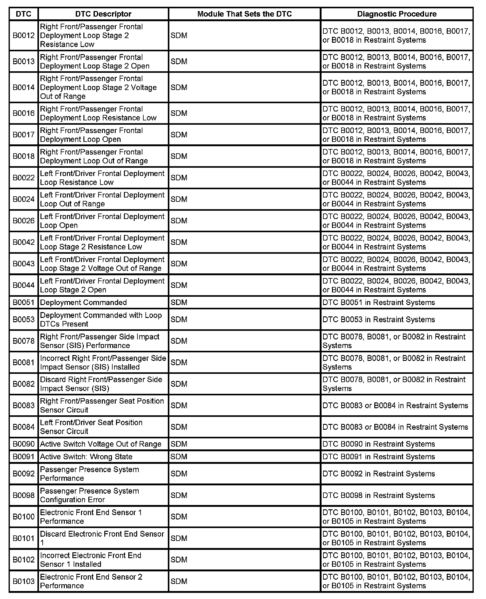 DTC's B0012-B0103: