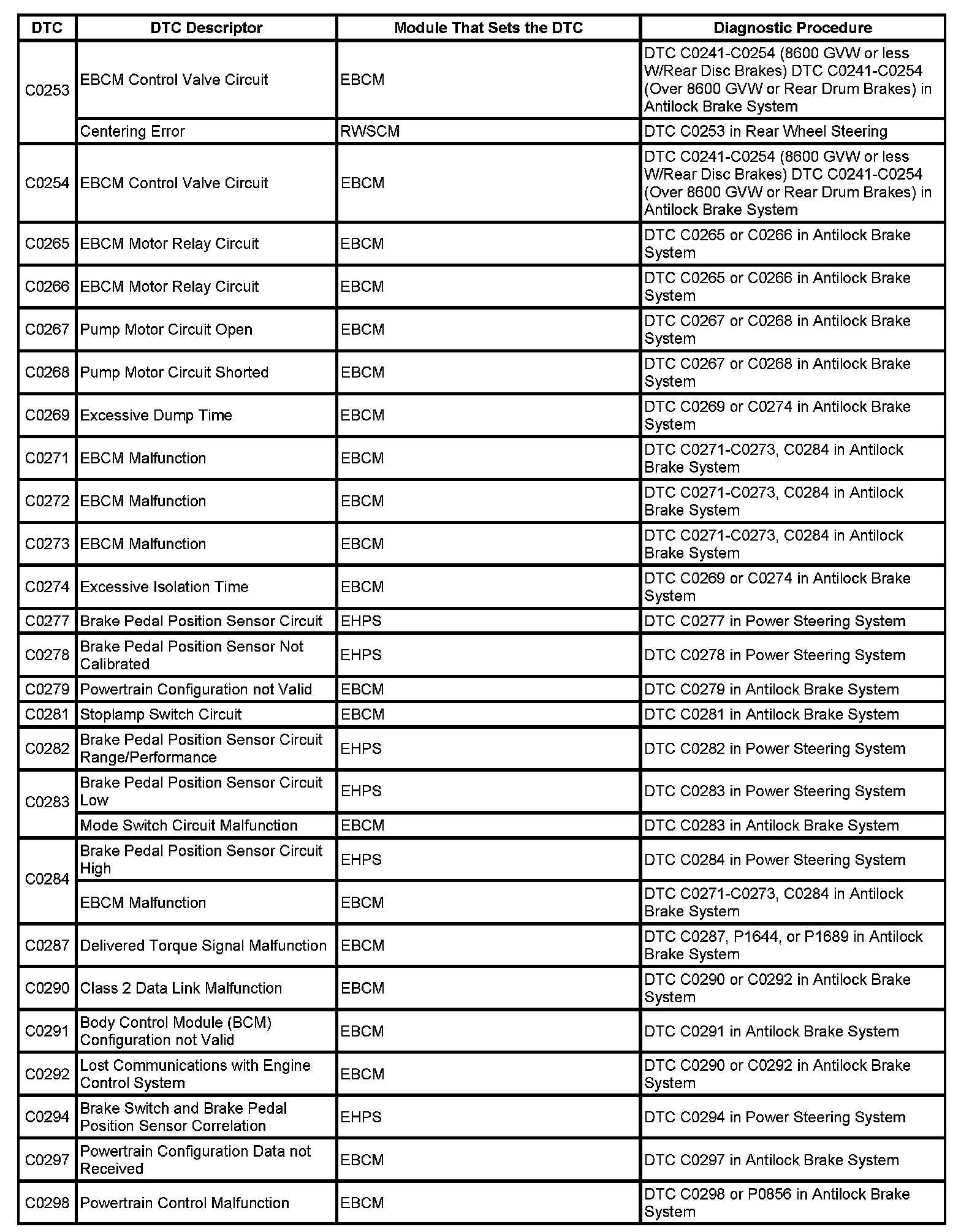 DTC's C0253-C0298: