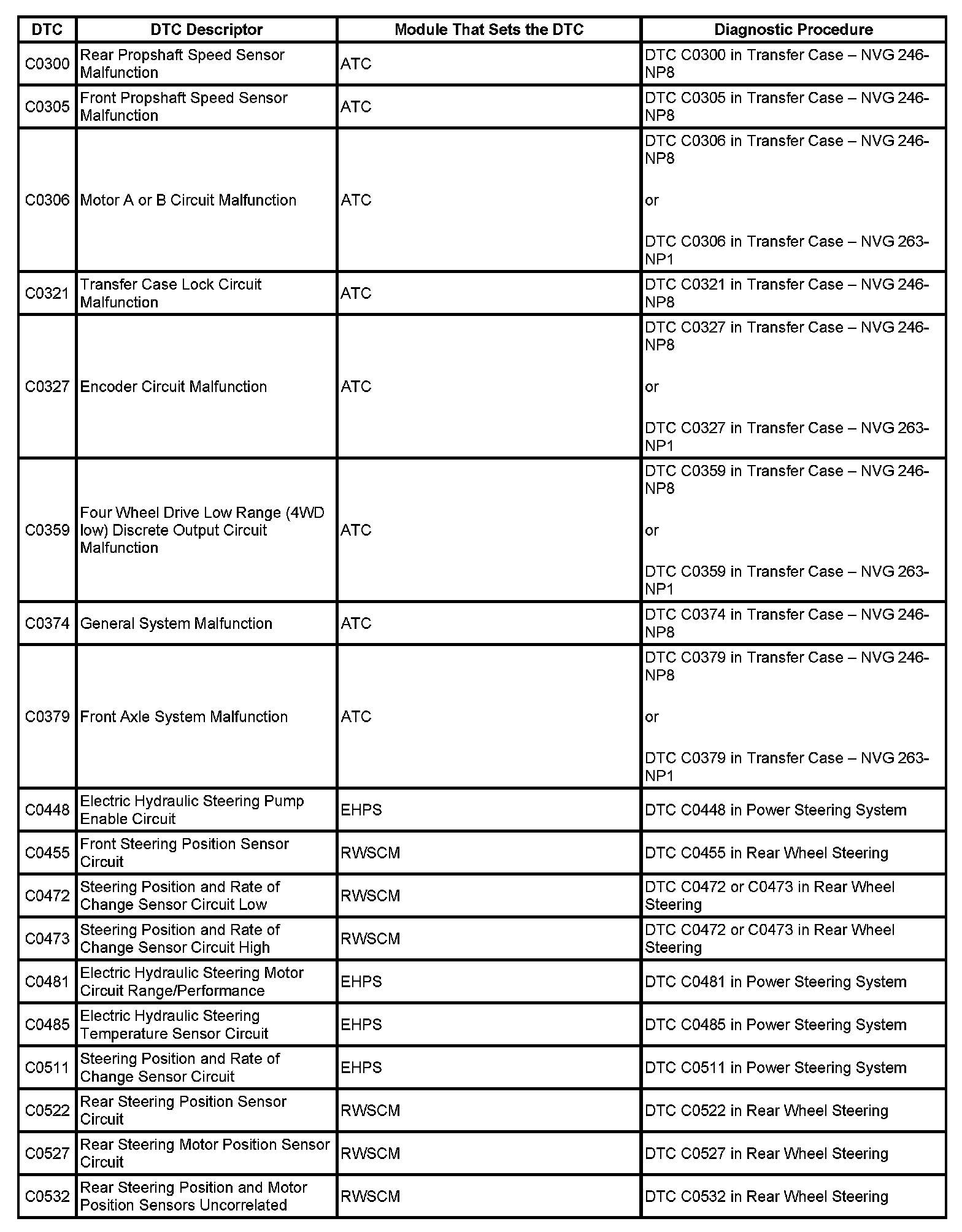DTC's C0300-C0532: