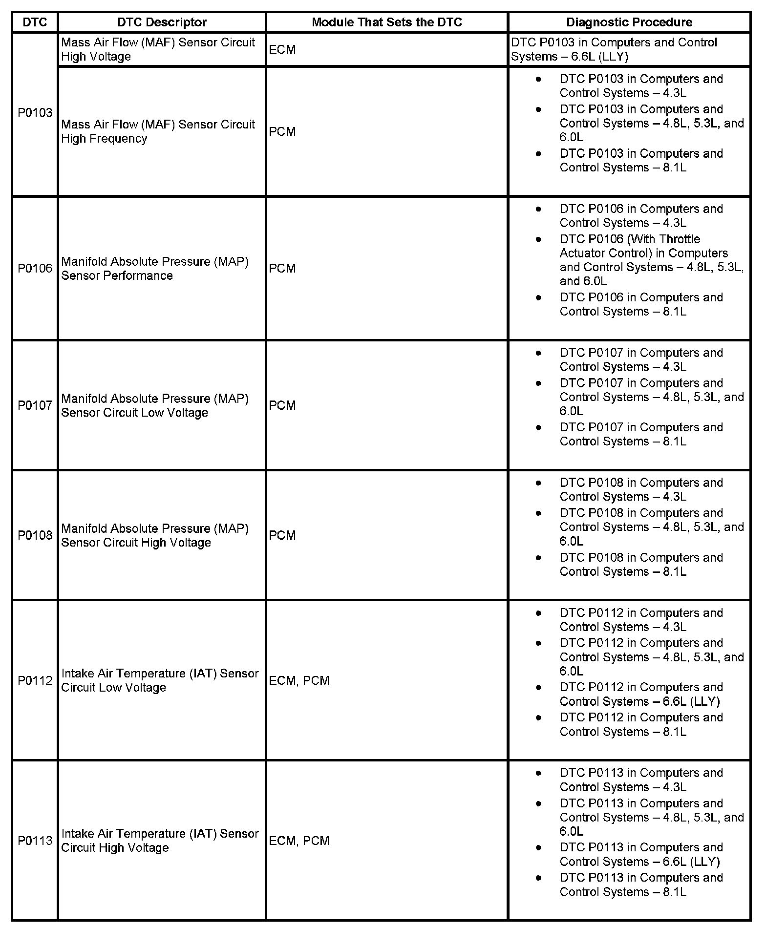DTC's P0103-P0113:
