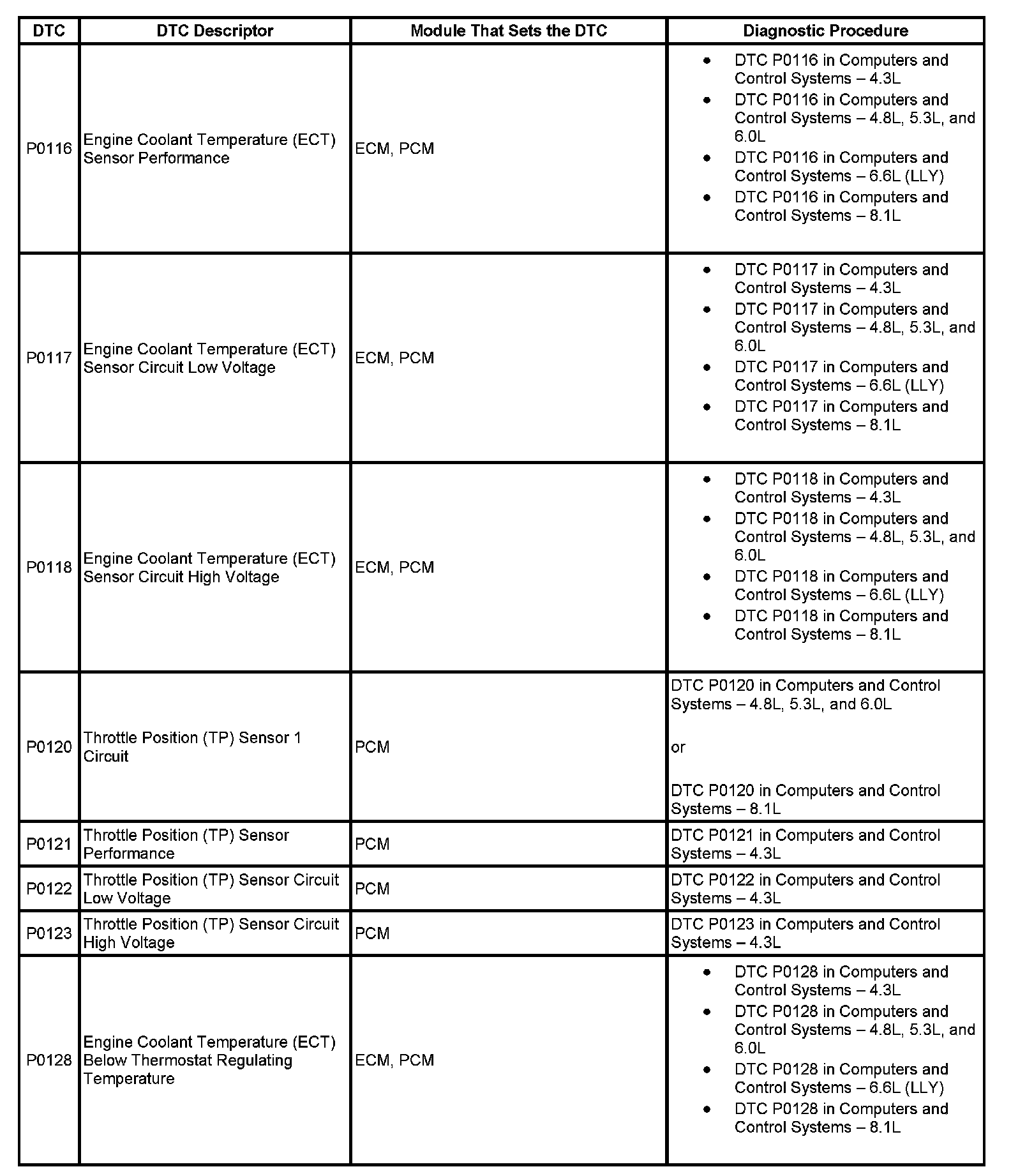 DTC's P0116-P0128: