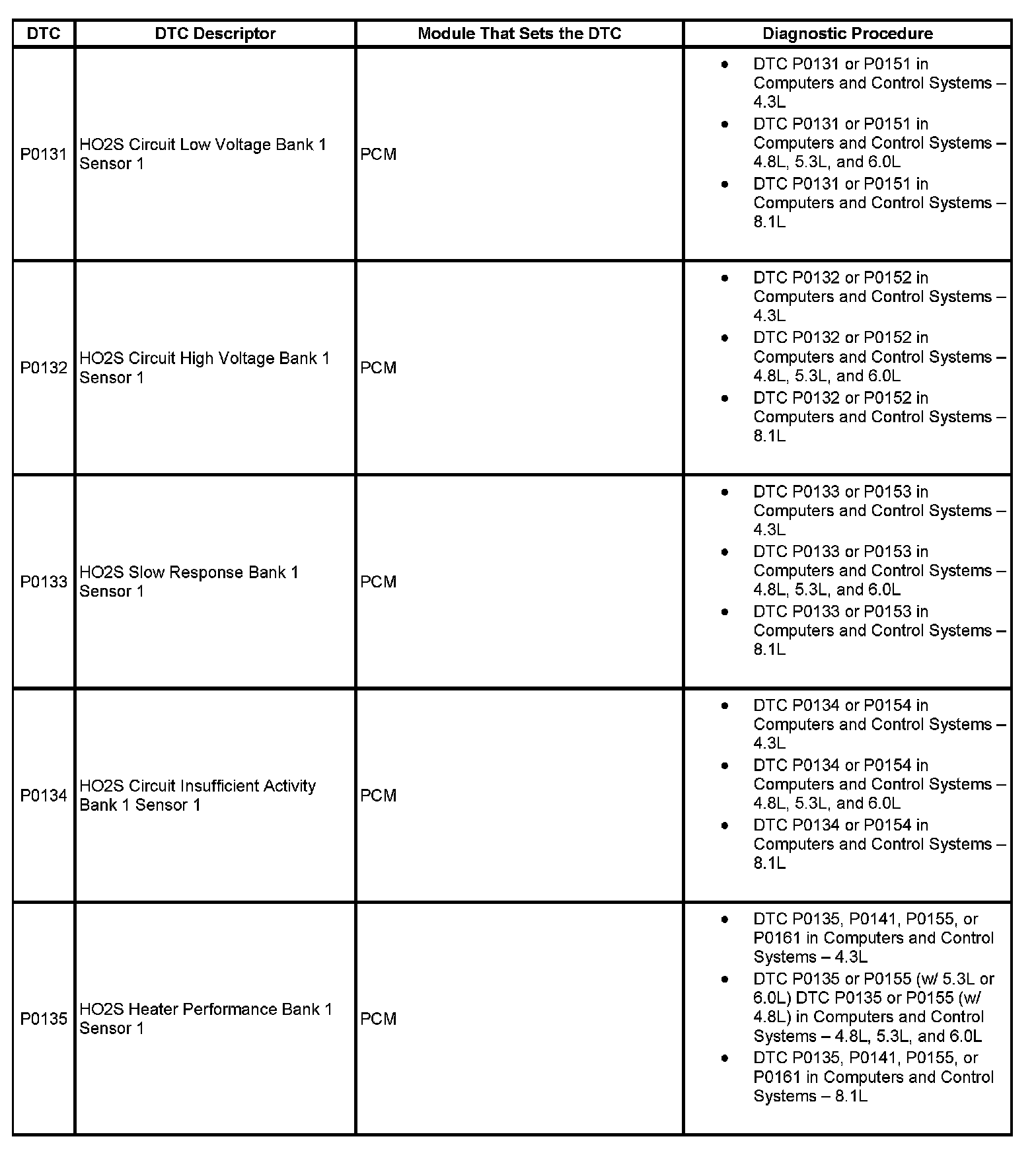 DTC's P0131-P0135: