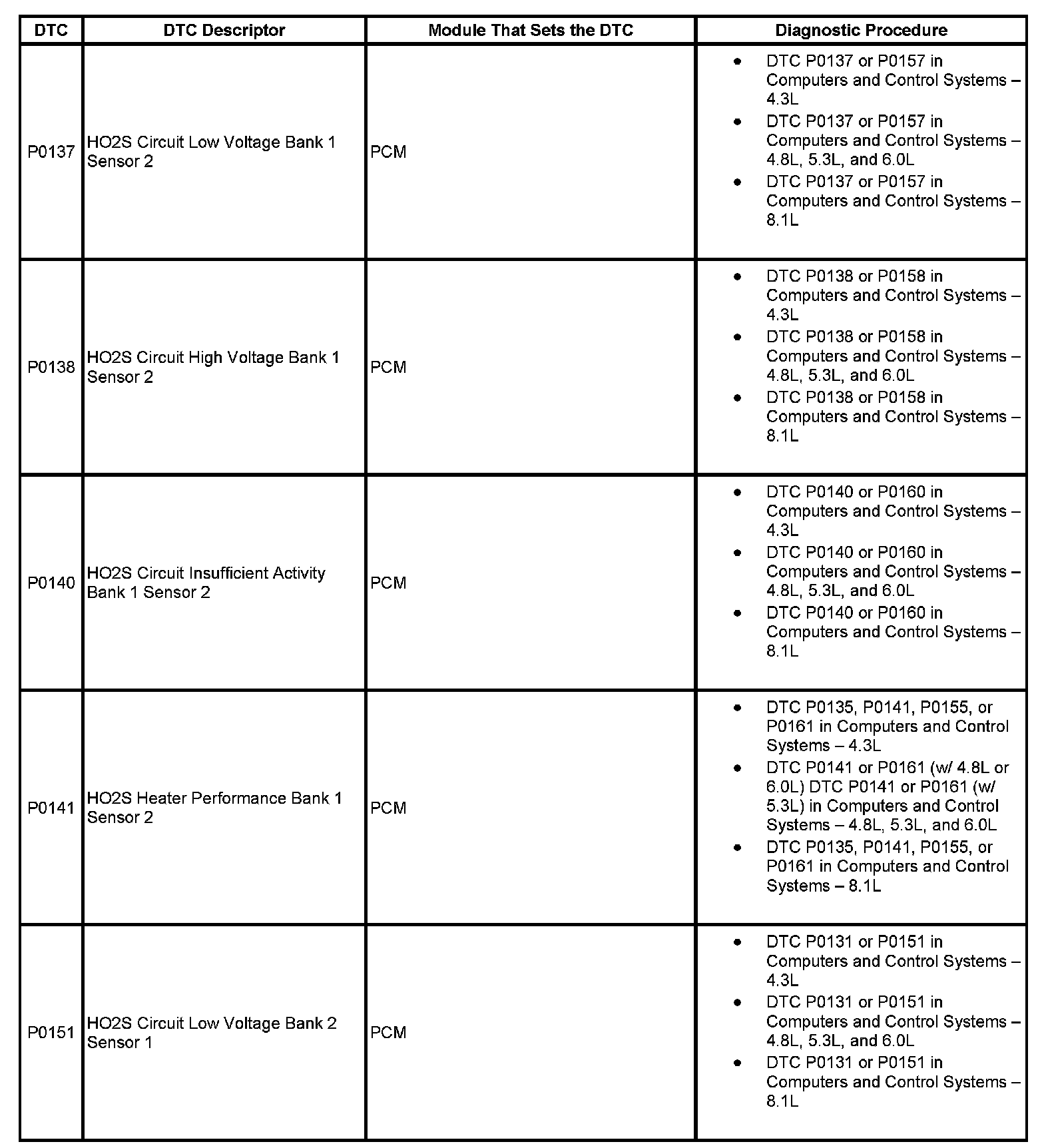 DTC's P0137-P0151: