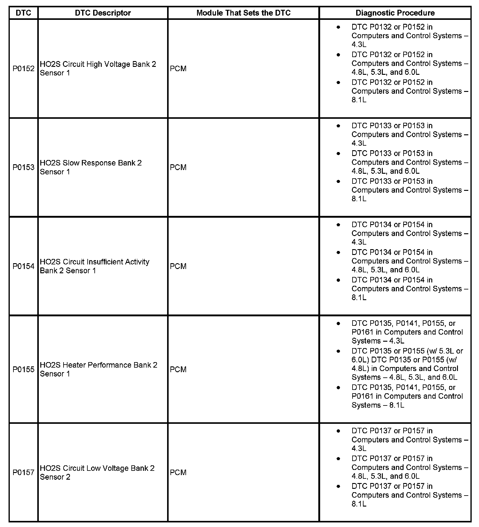 DTC's P0152-P0157: