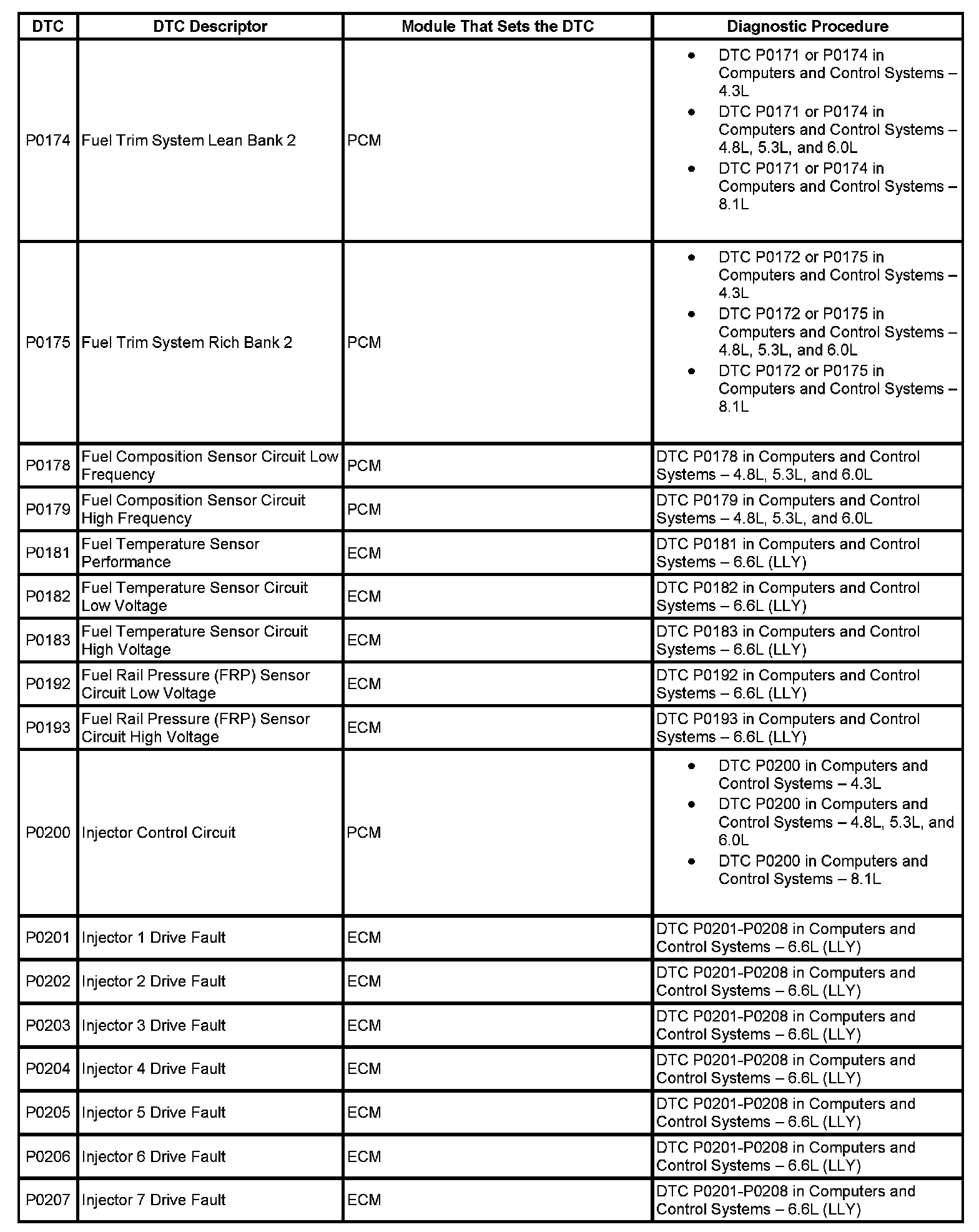 DTC's P0174-P0207: