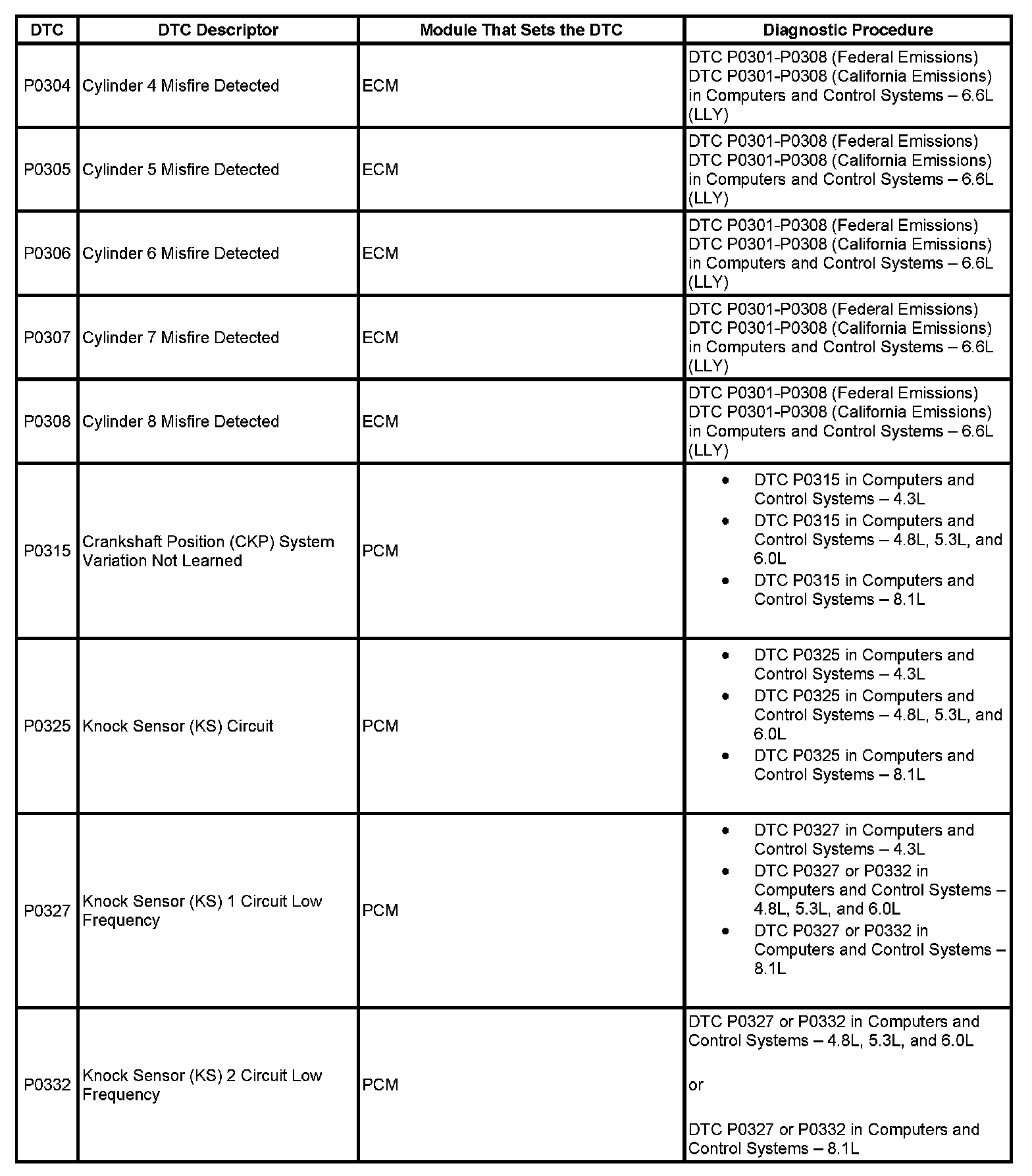 DTC's P0304-P0332: