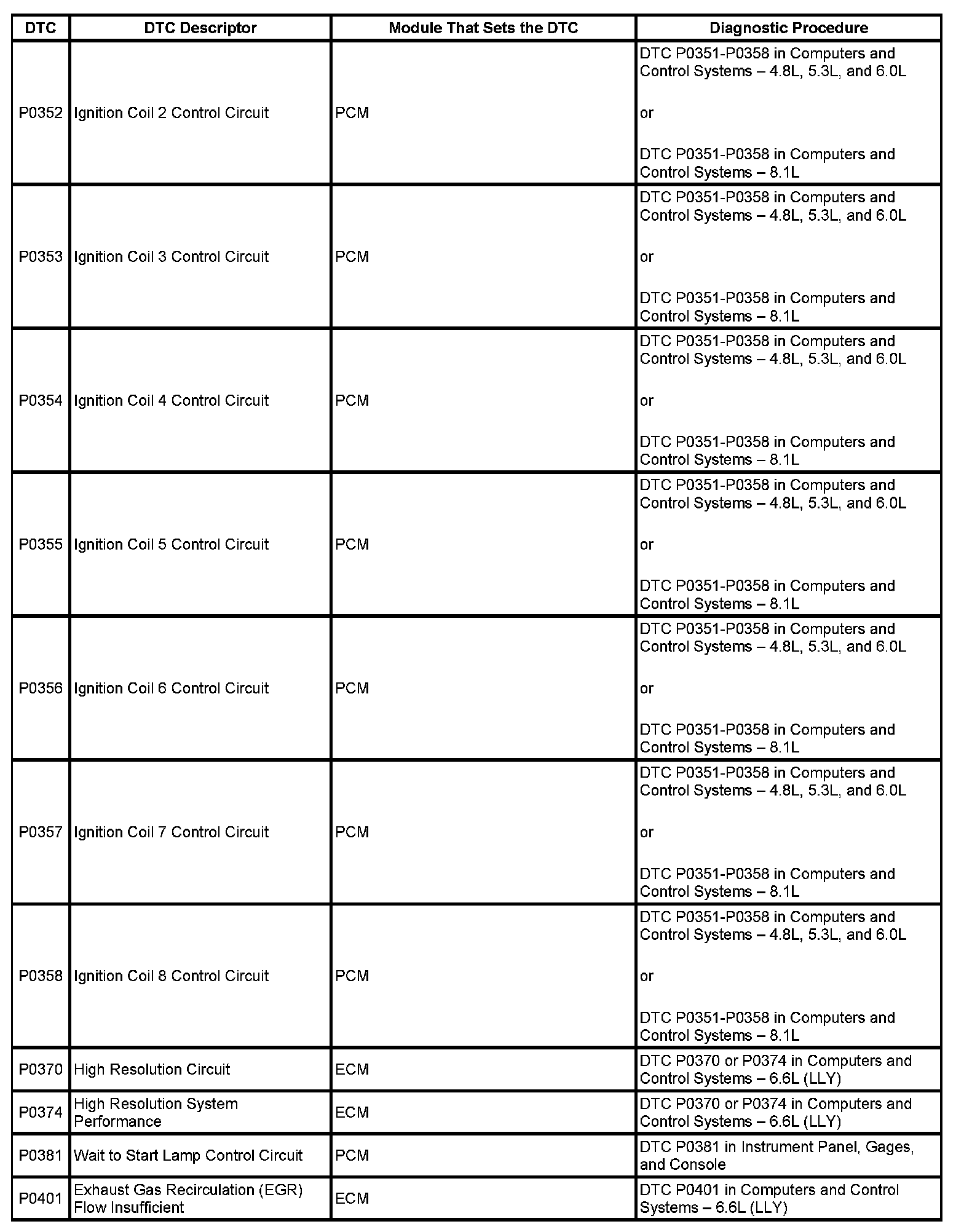 DTC's P0352-P0401: