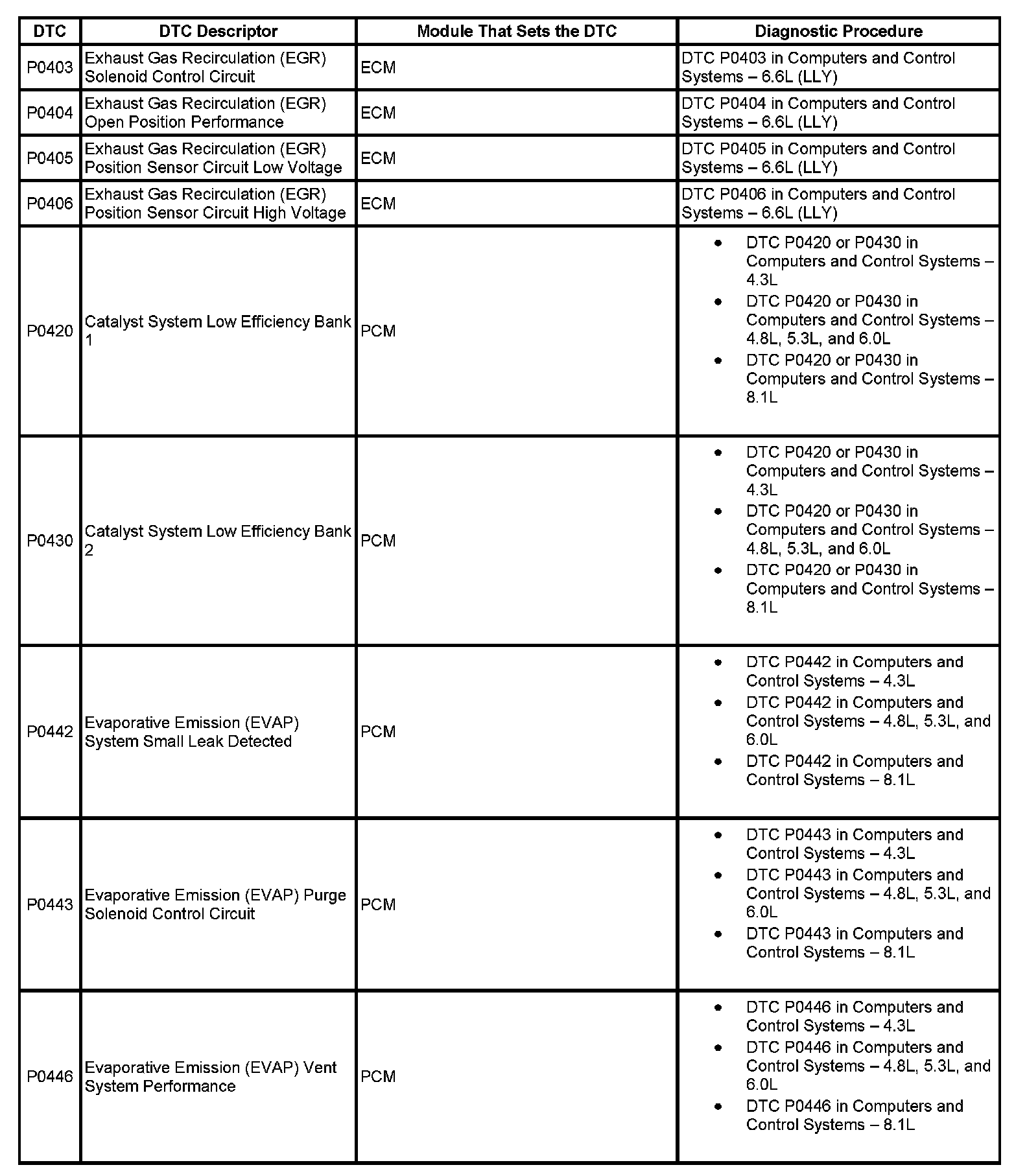 DTC's P0403-P0446: