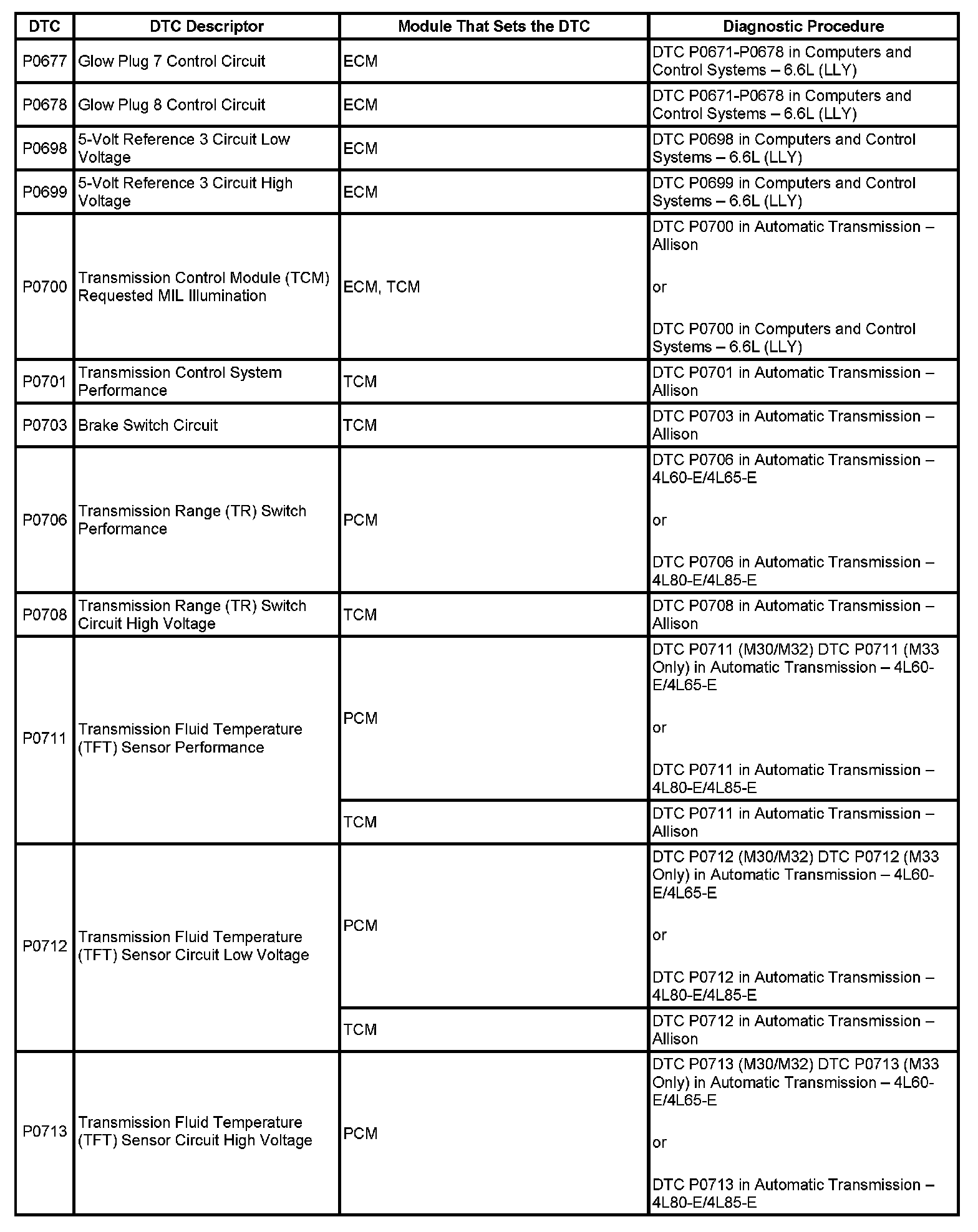 DTC's P0677-P0713: