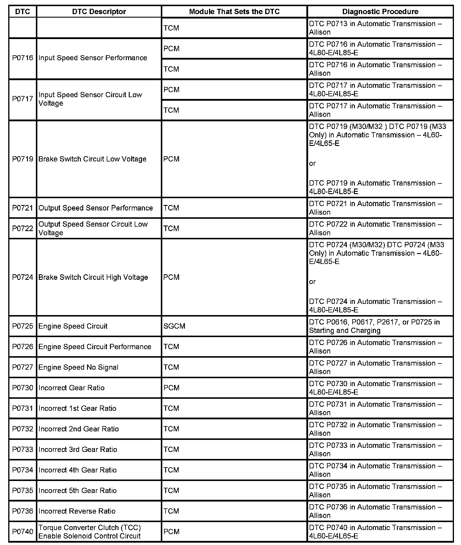 DTC's P0716-P0740: