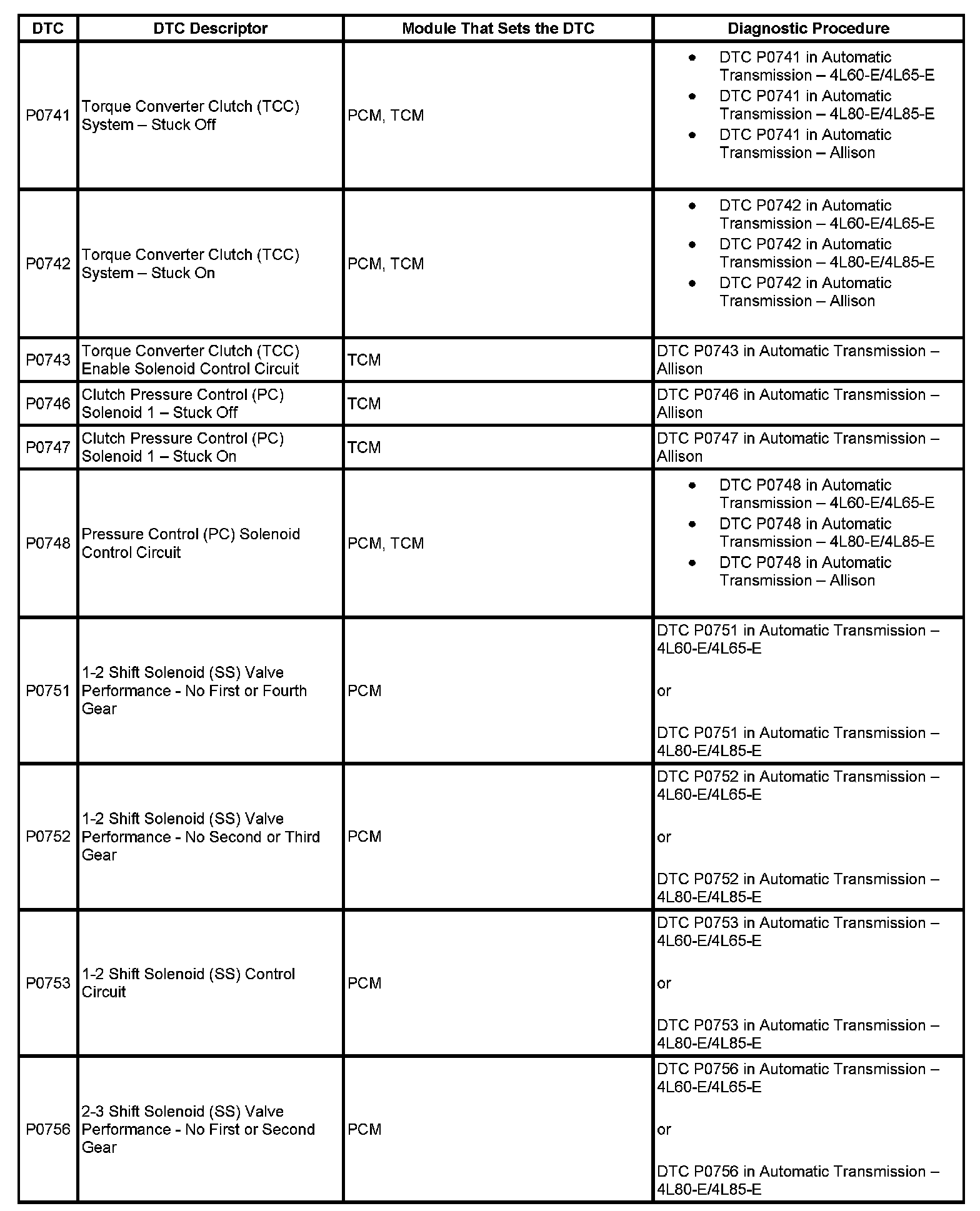 DTC's P0741-P0756: