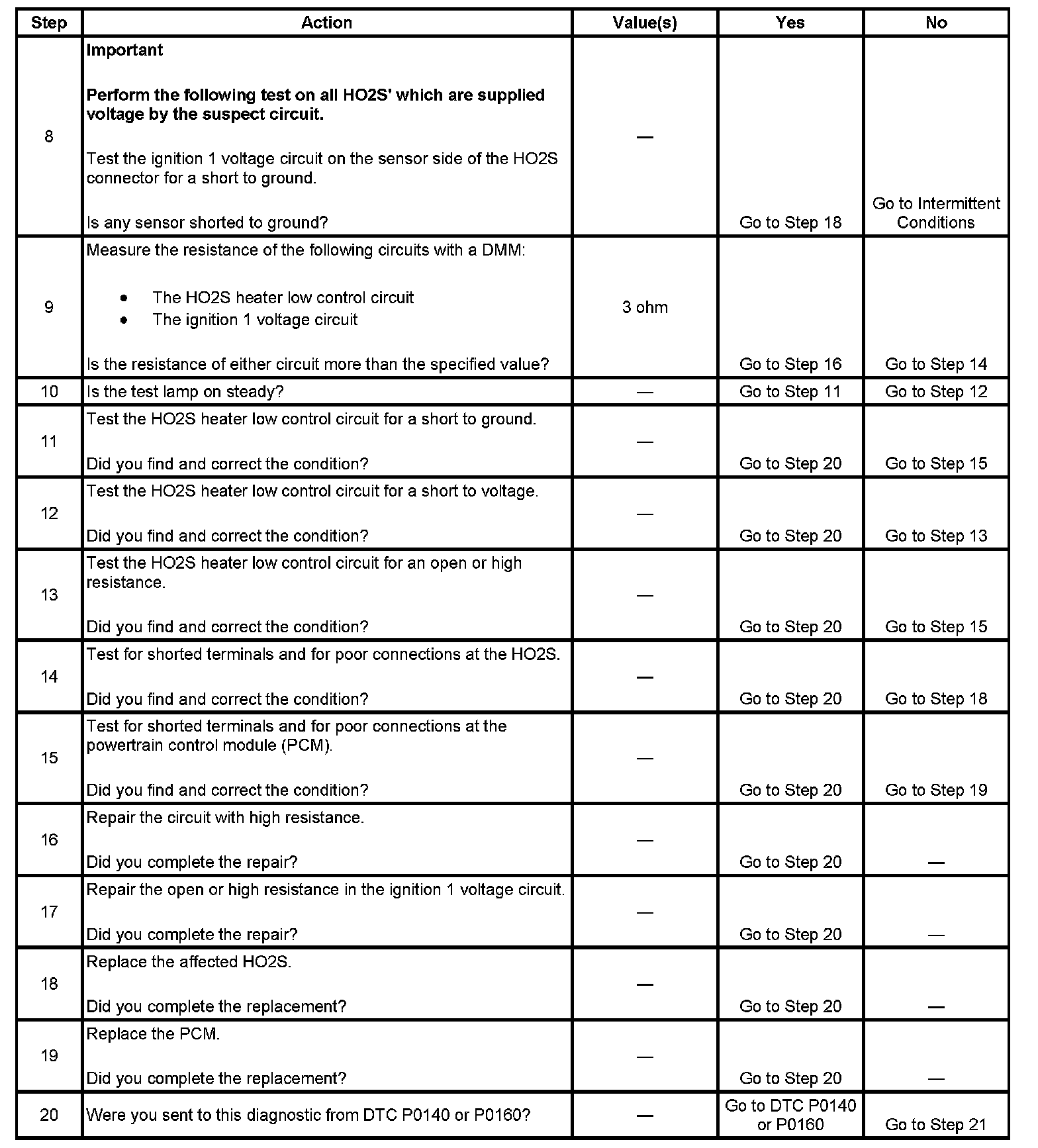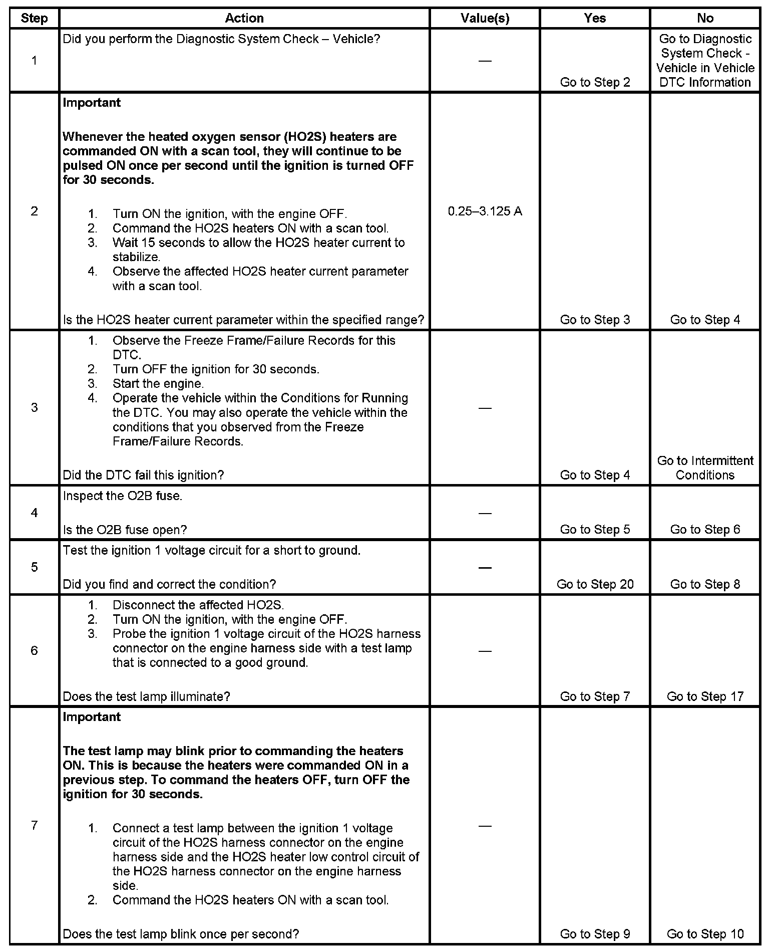 - The PCM detects that the affected HO2S Heater current parameter is greater than 3.125 amps or less than 0.25 amps.