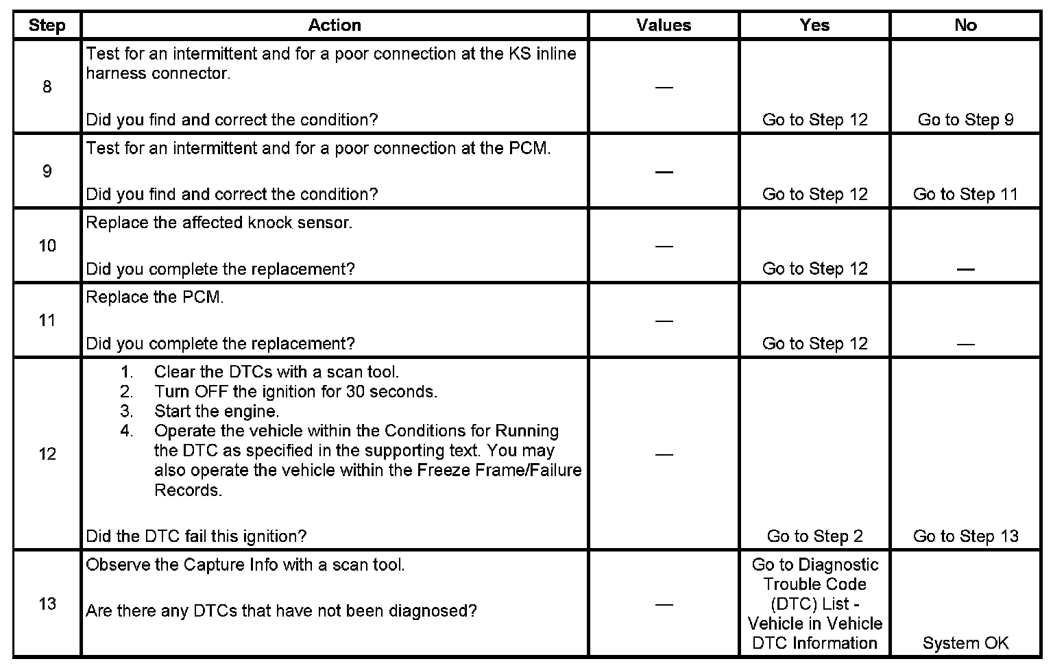 - Inspect the KS for proper installation. A knock sensor that is loose or over torqued may cause the DTC to set.