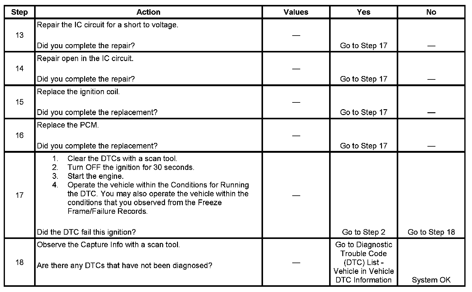 If the PCM detects that the IC circuit has an incorrect voltage level, DTC P0351-P0358 will set.