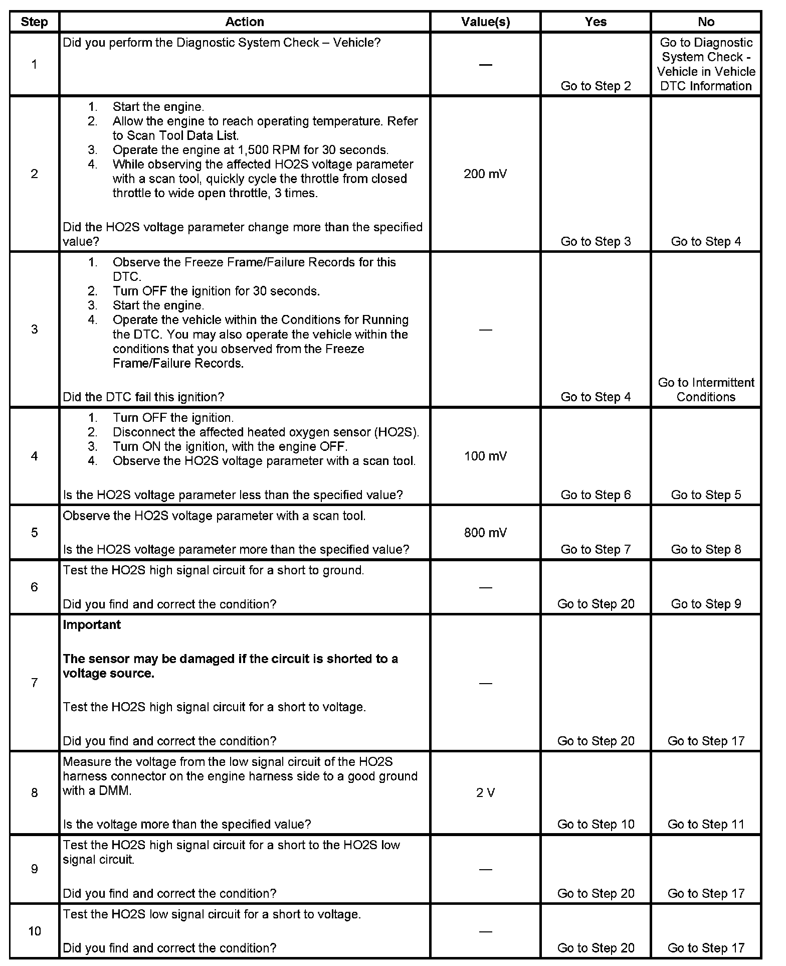 2. If the voltage does not change more than the specified value, the condition is present.