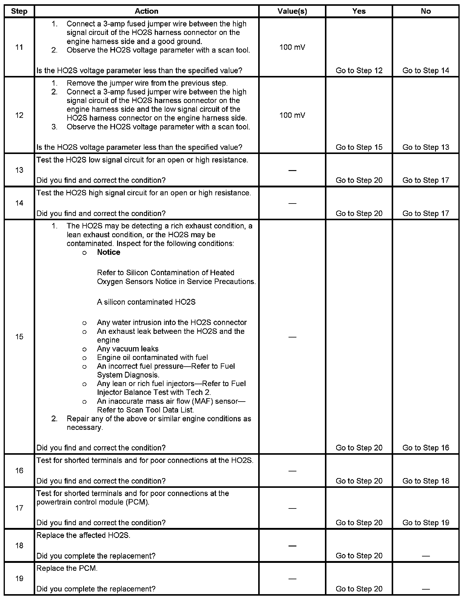 - The PCM detects that the HO2S bank 1 sensor 2 or HO2S bank 2 sensor 2 is less than 710 mV for 60 seconds.