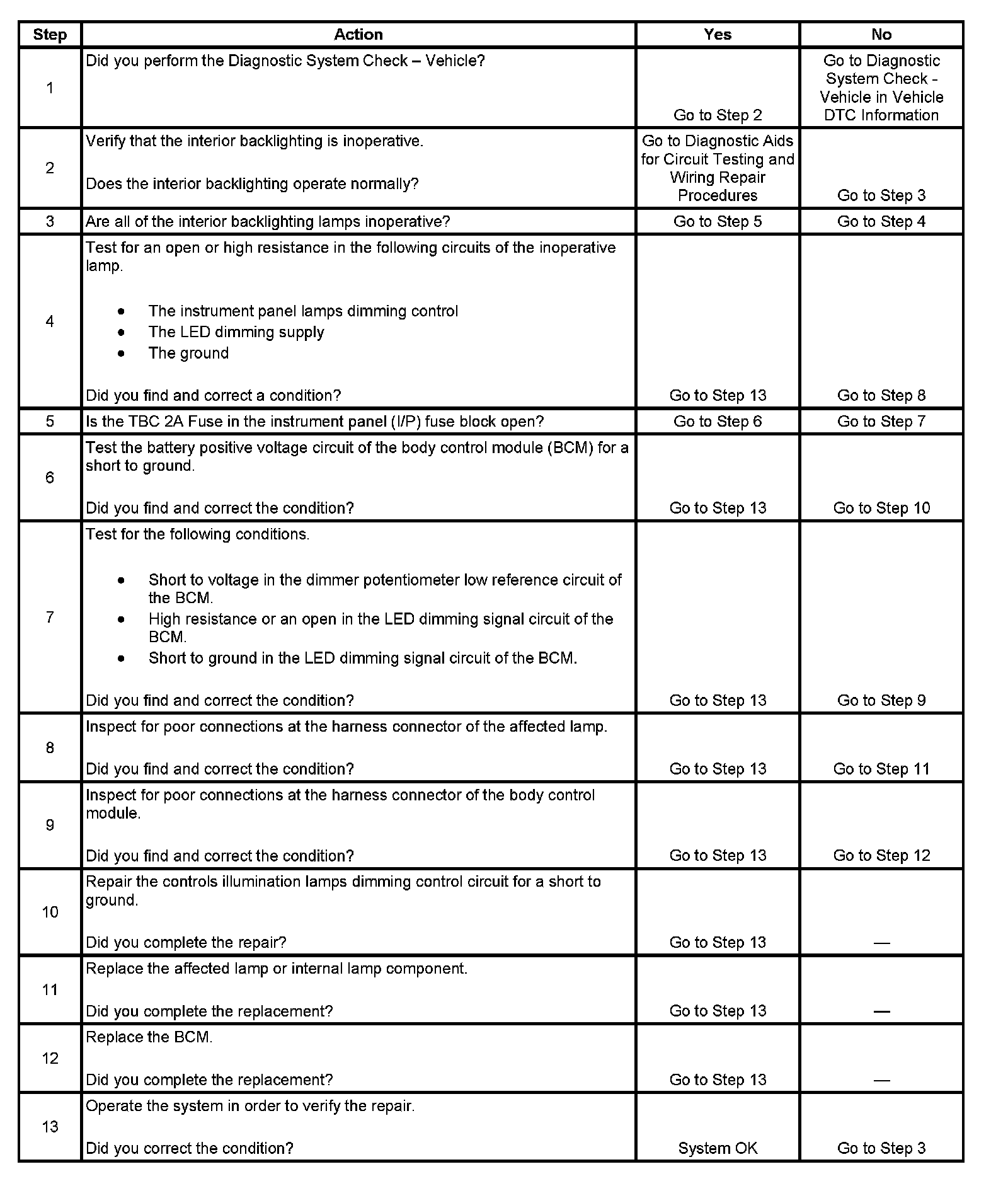 Interior Backlighting Inoperative
