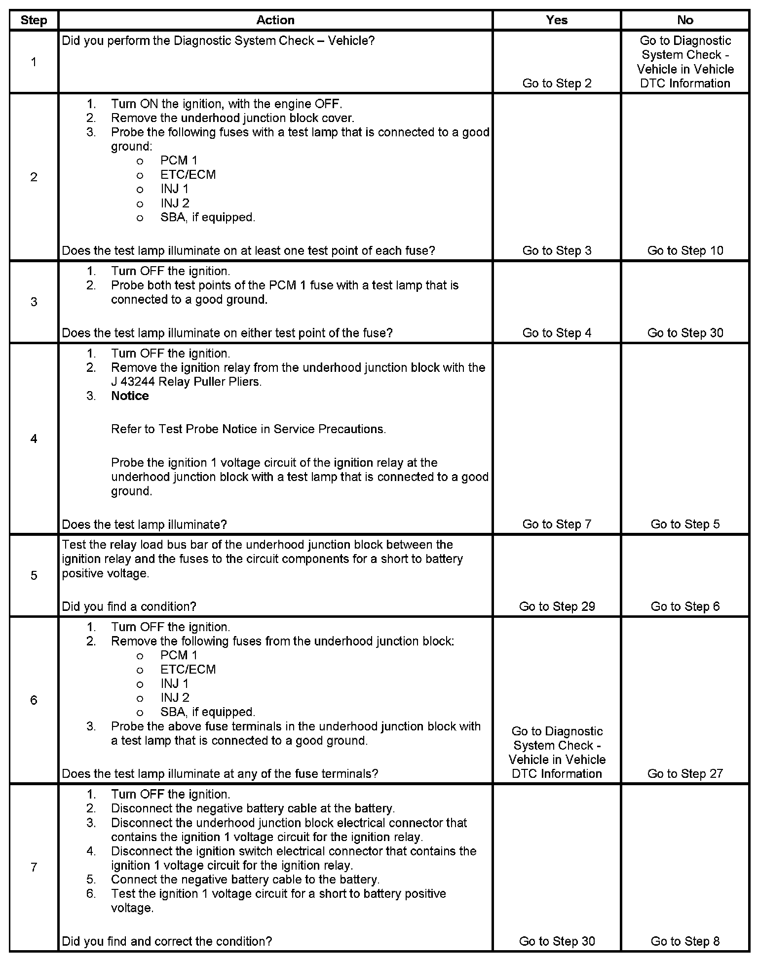 The ignition relay table assumes that the vehicle battery is fully charged. Refer to Battery Inspection/Test in Starting and Charging. Battery Inspection/Test