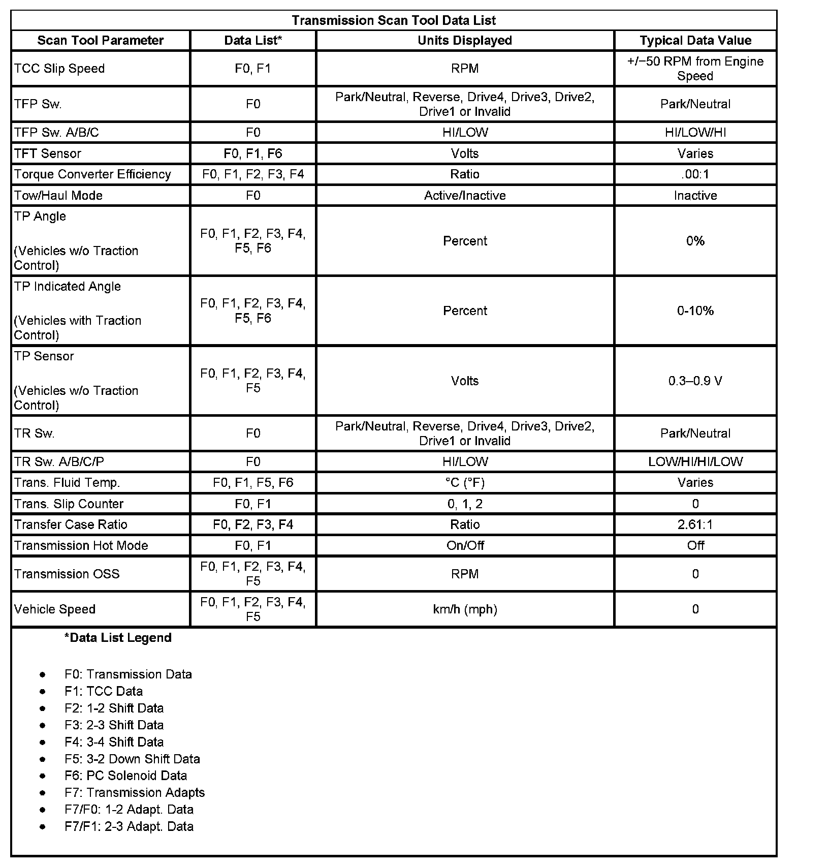 Only the parameters listed below are used for diagnosing. If a scan tool displays other parameters, the values are not recommended by General Motors for use in diagnosis.