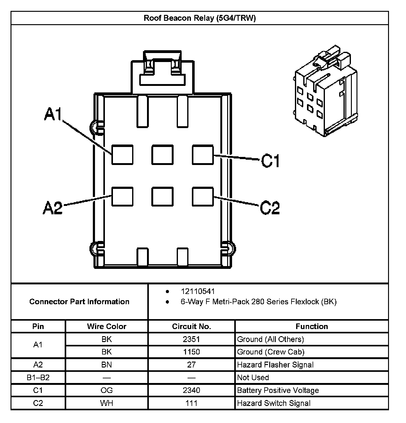 Roof Beacon Relay (With RPO Code 5G4/TRW):