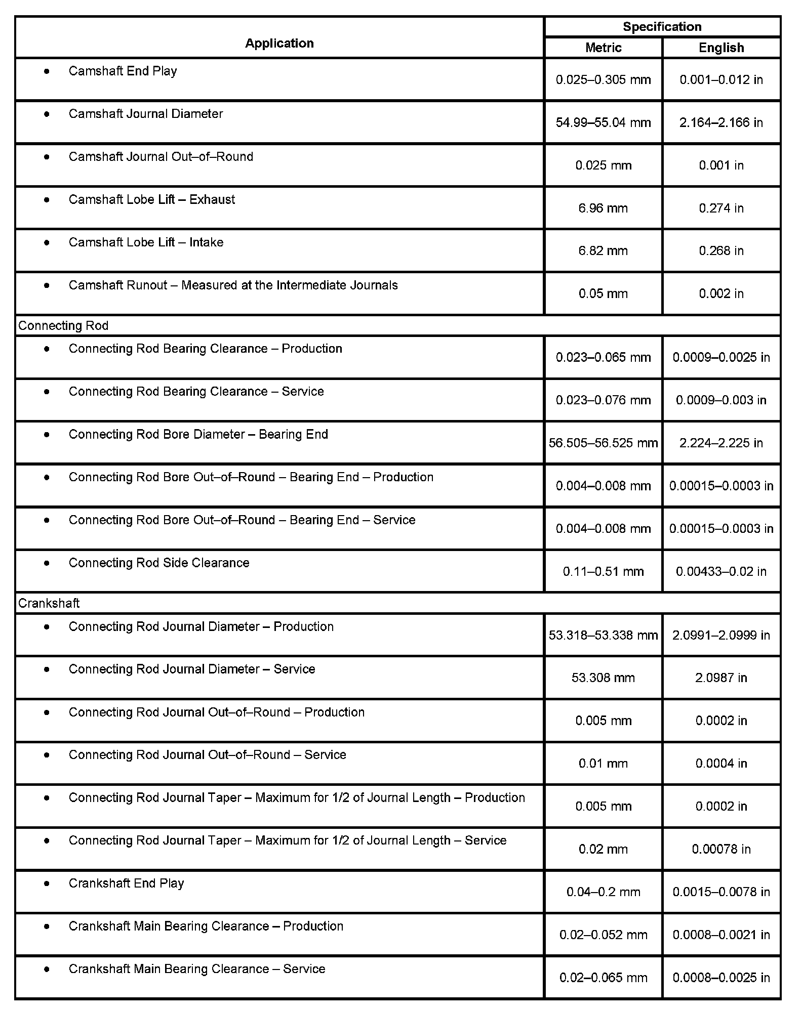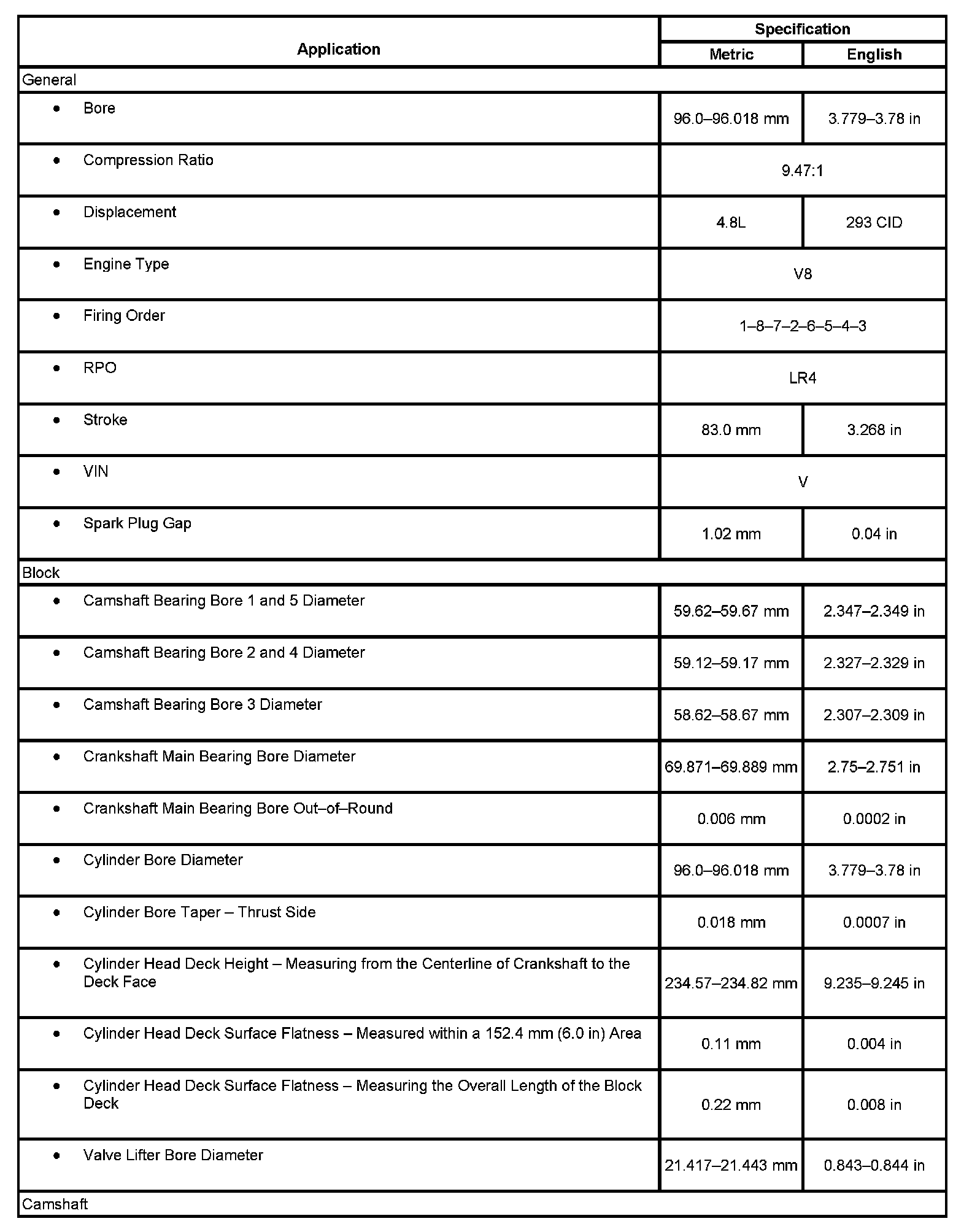 Engine Mechanical Specifications (LR4 VIN V)