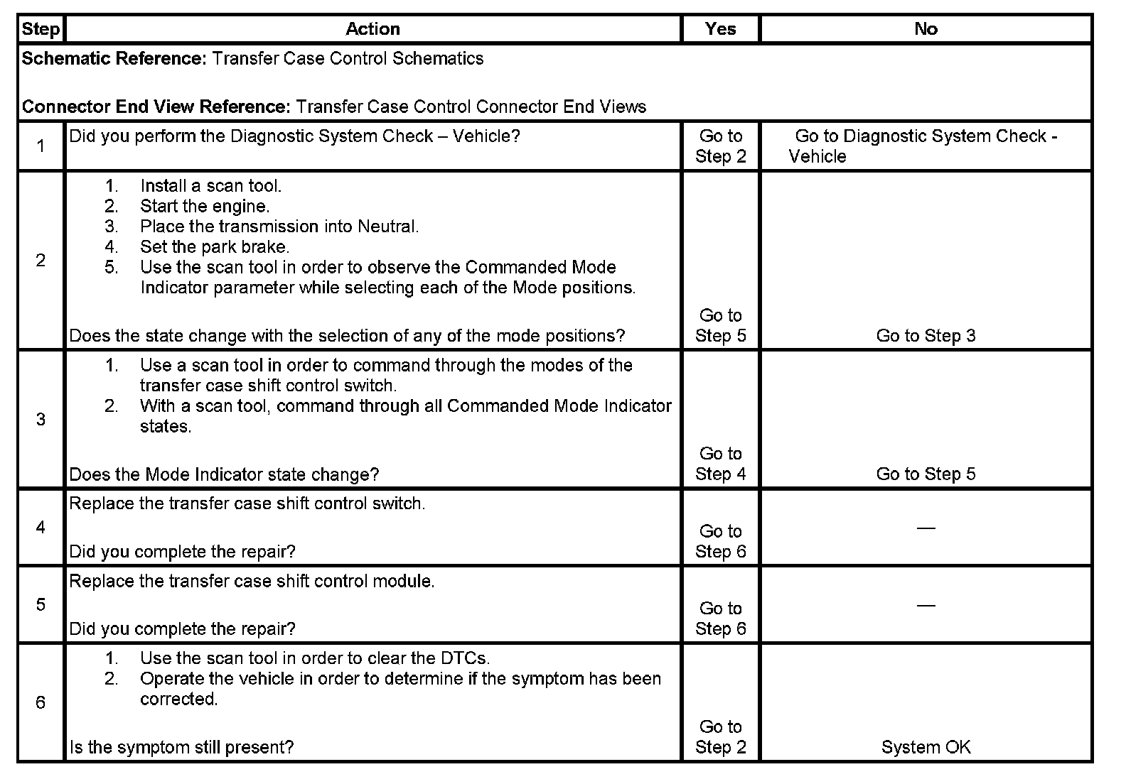 When each switch is depressed, the switch completes a circuit through the respective resistor. The transfer case shift control module continuously monitors the switch input to determine which of the following buttons were selected by the driver:
