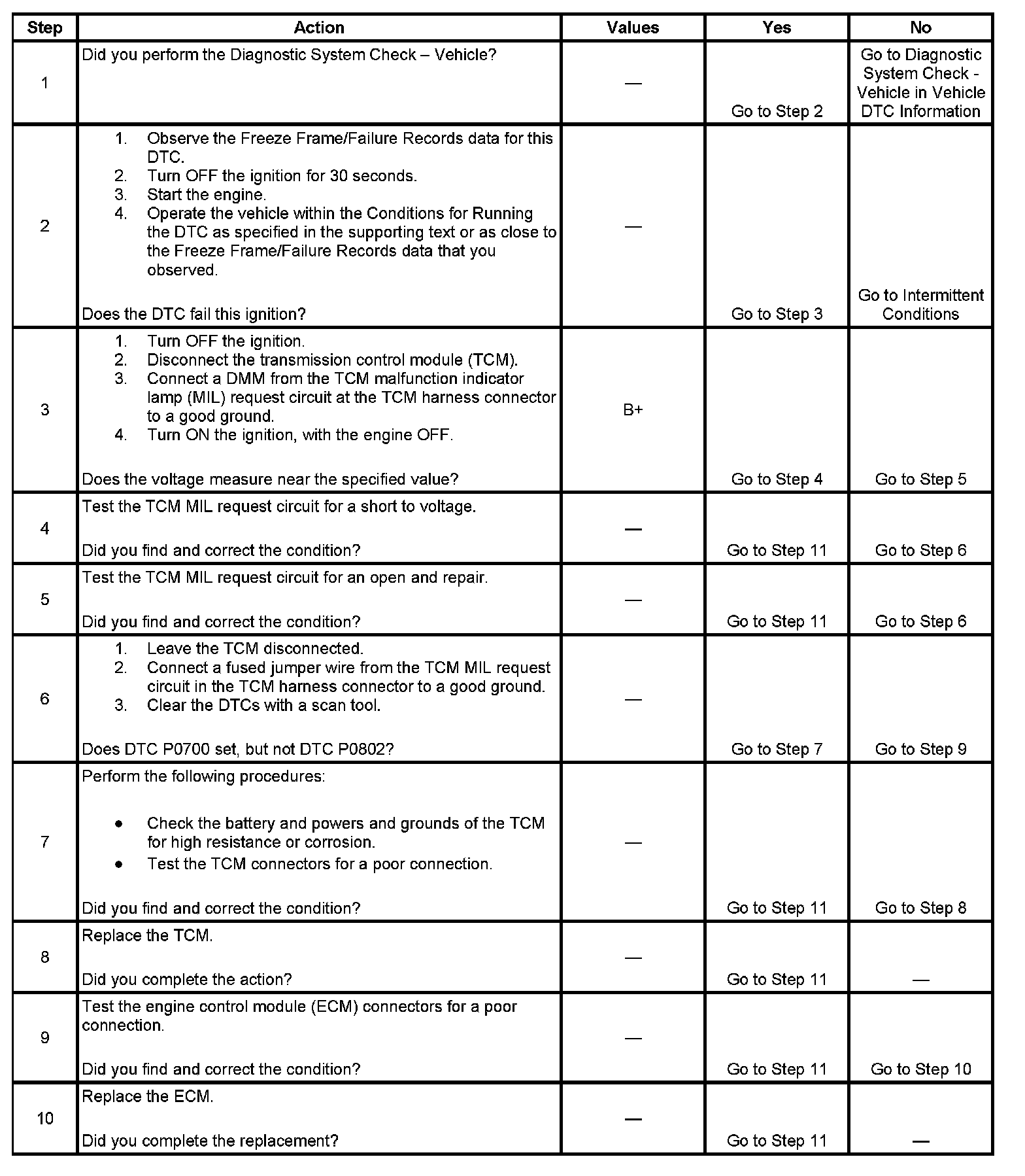 DTC P0802 Transmission Control Module (TCM) MIL Request Circuit