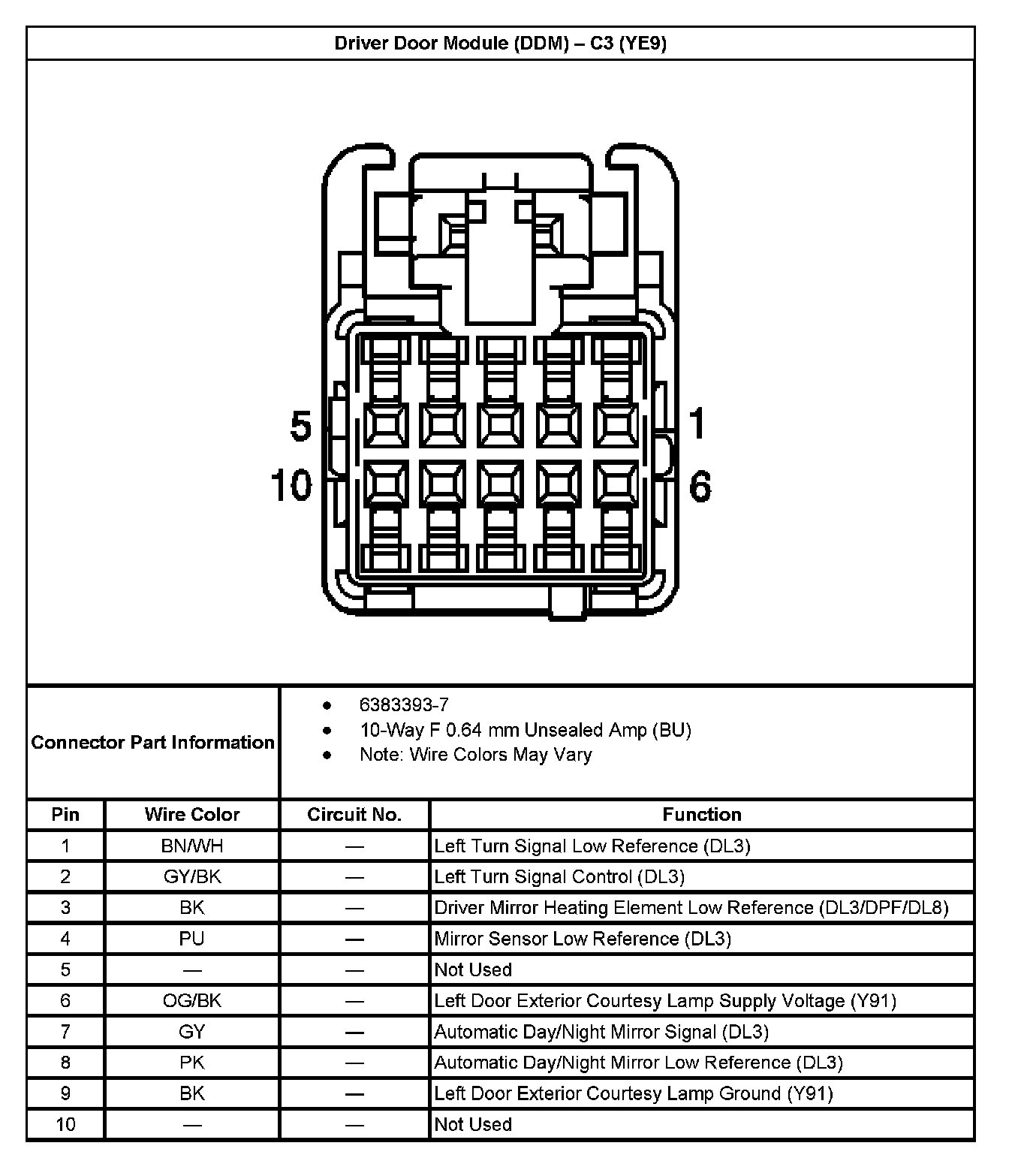 Driver Door Module (DDM) - C3 (With RPO Code YE9):
