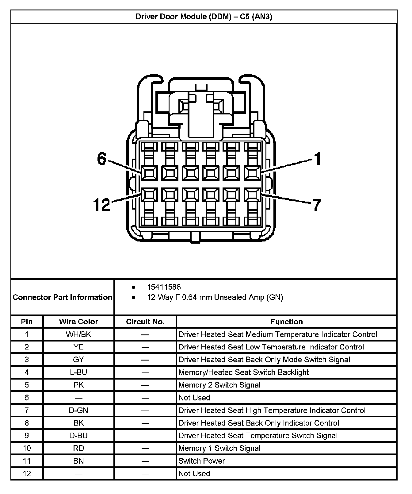 Driver Door Module (DDM) - C5 (With RPO Code AN3):