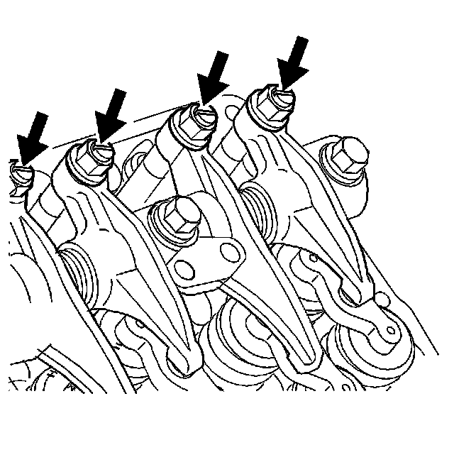 3. Loosen the valve clearance adjusting screw on each rocker arm in order to relieve tension on the valvetrain.