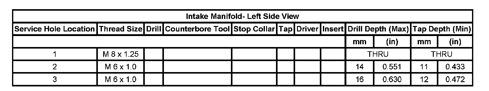 Thread Repair Specifications