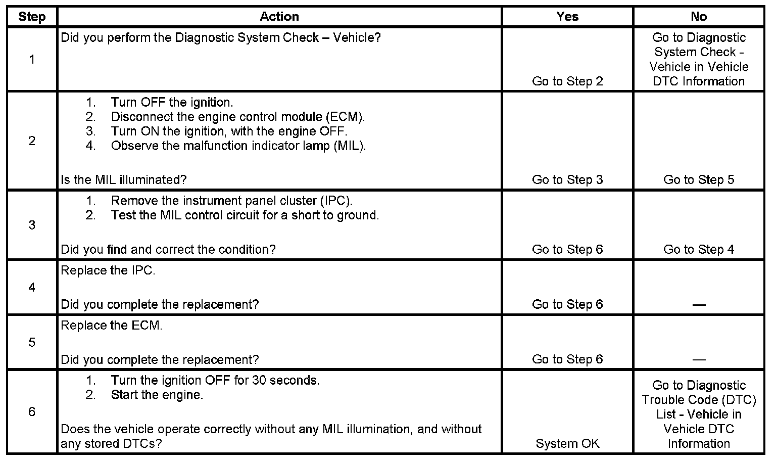 2. This step determines if the condition is with the MIL control circuit or the ECM.