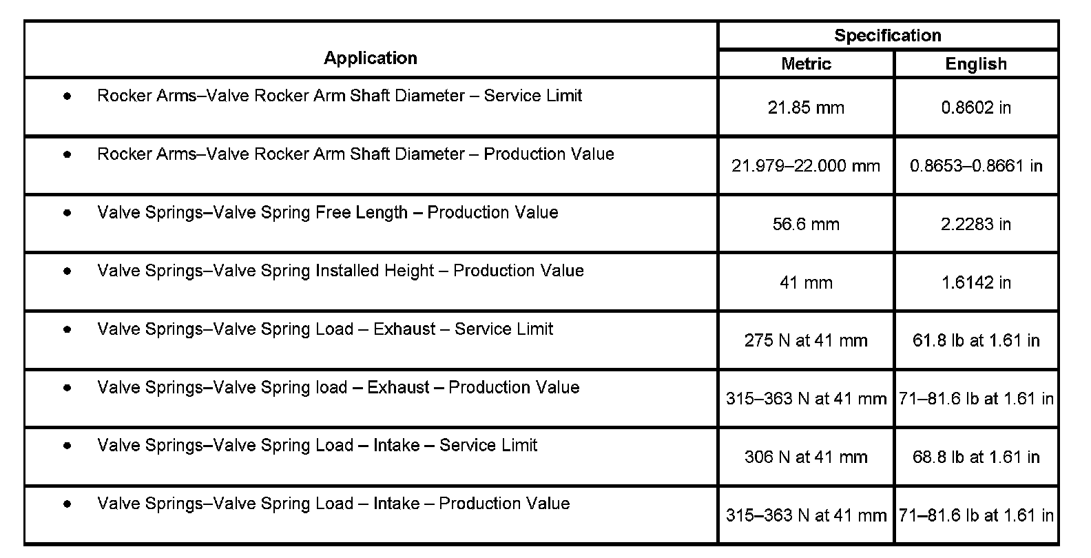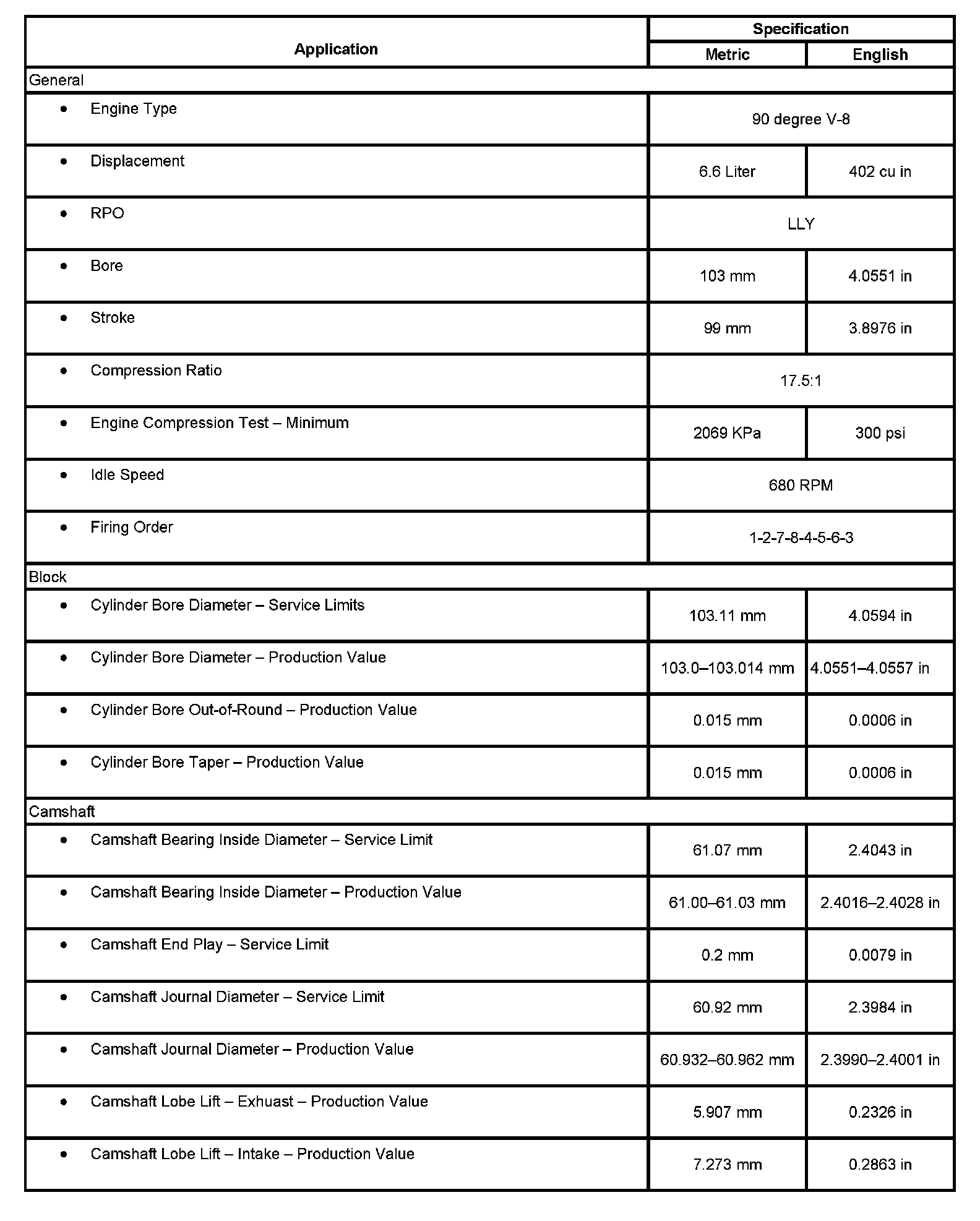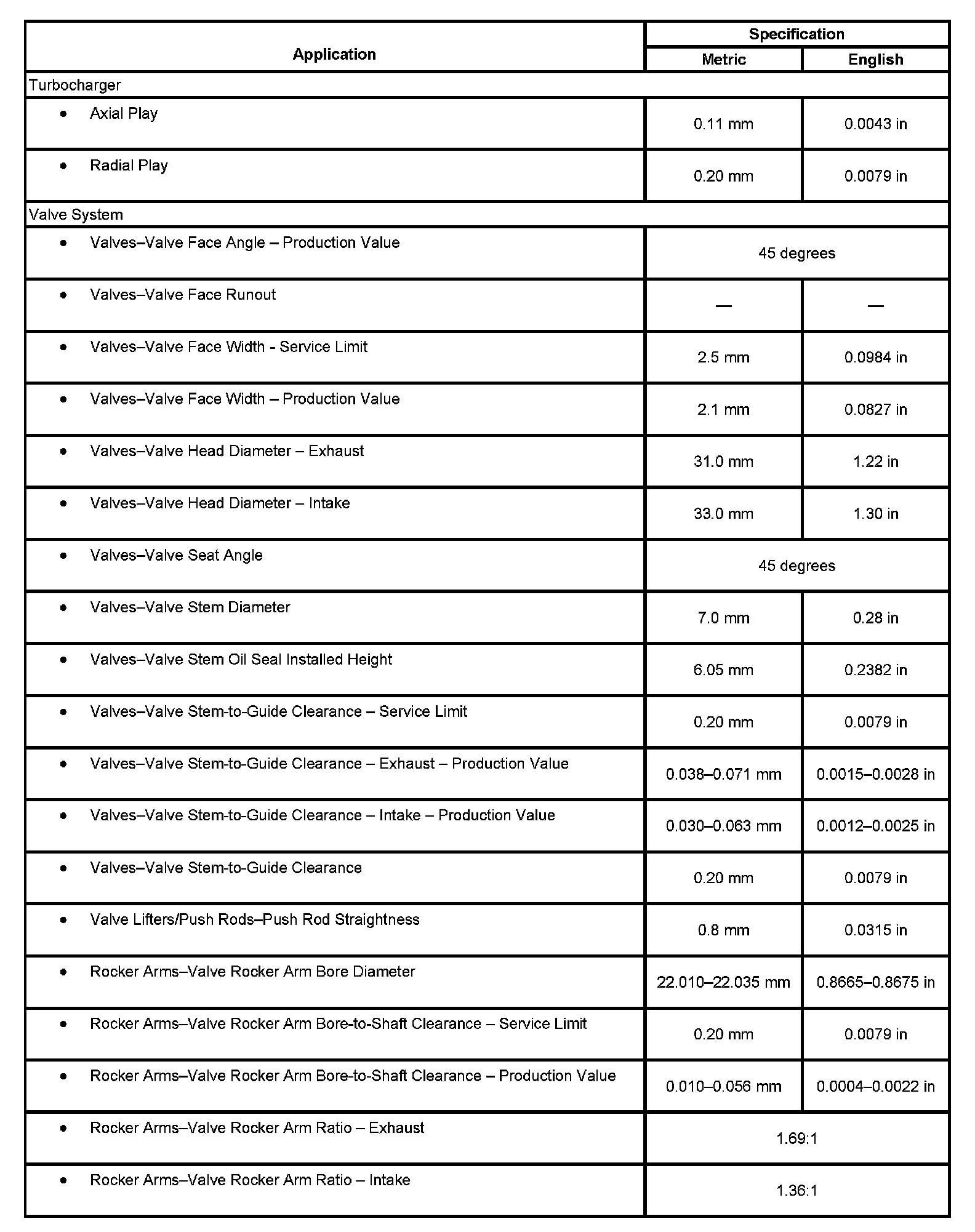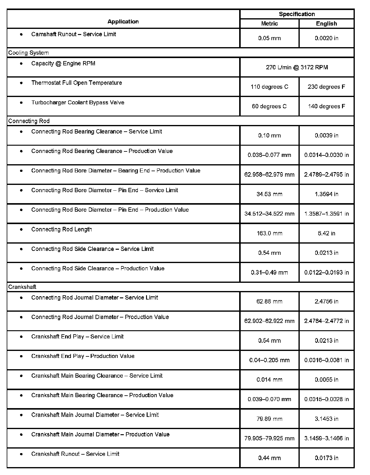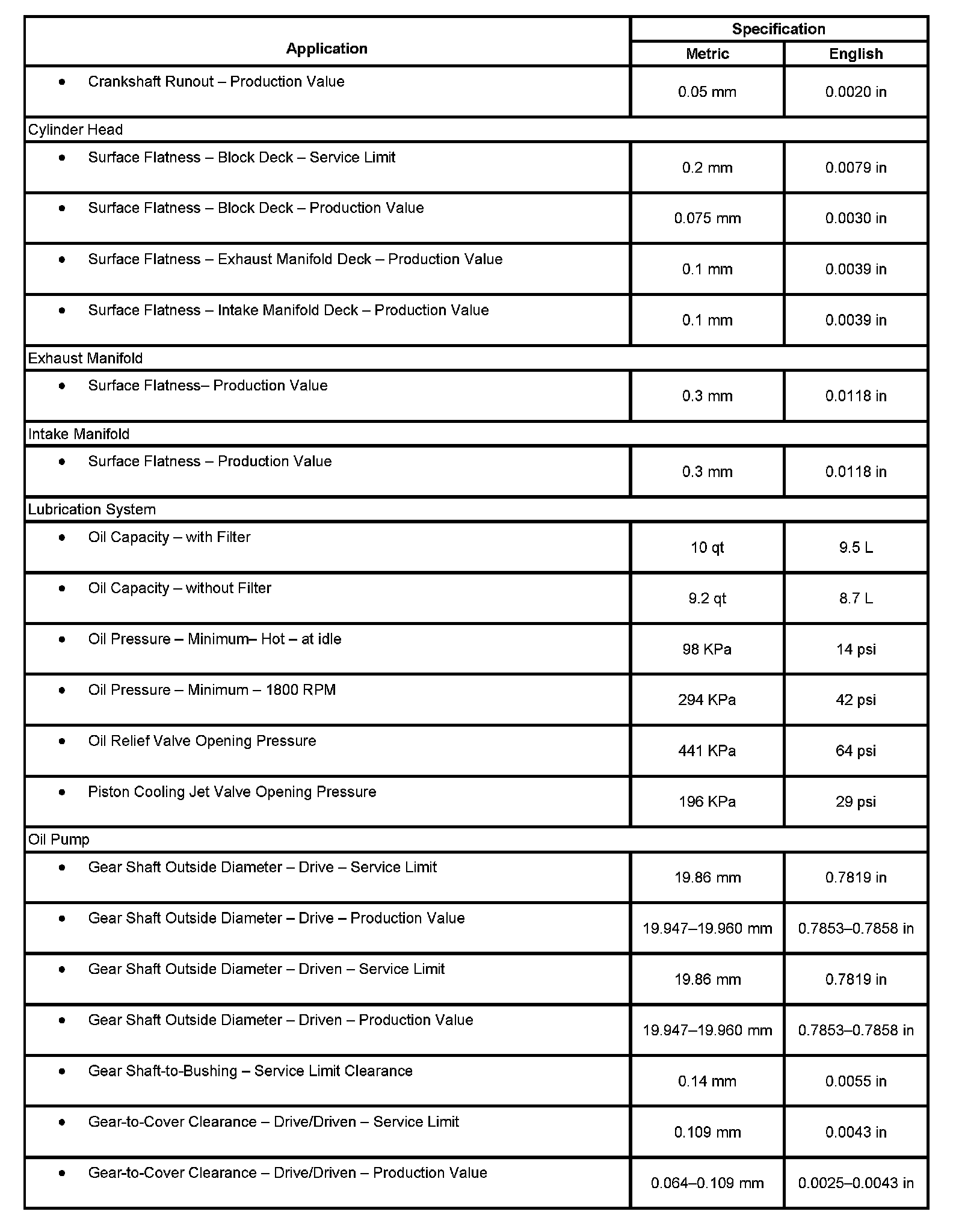 Engine Mechanical Specifications