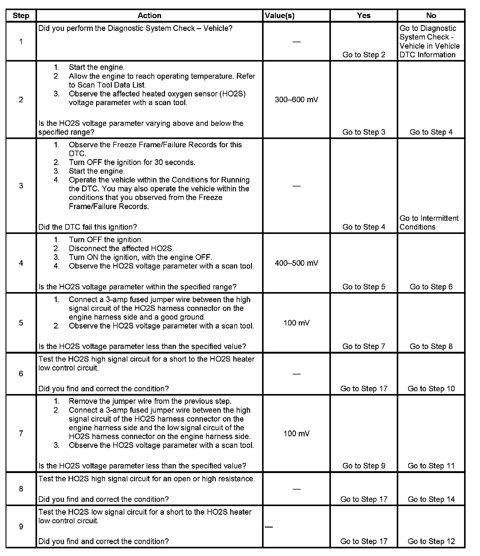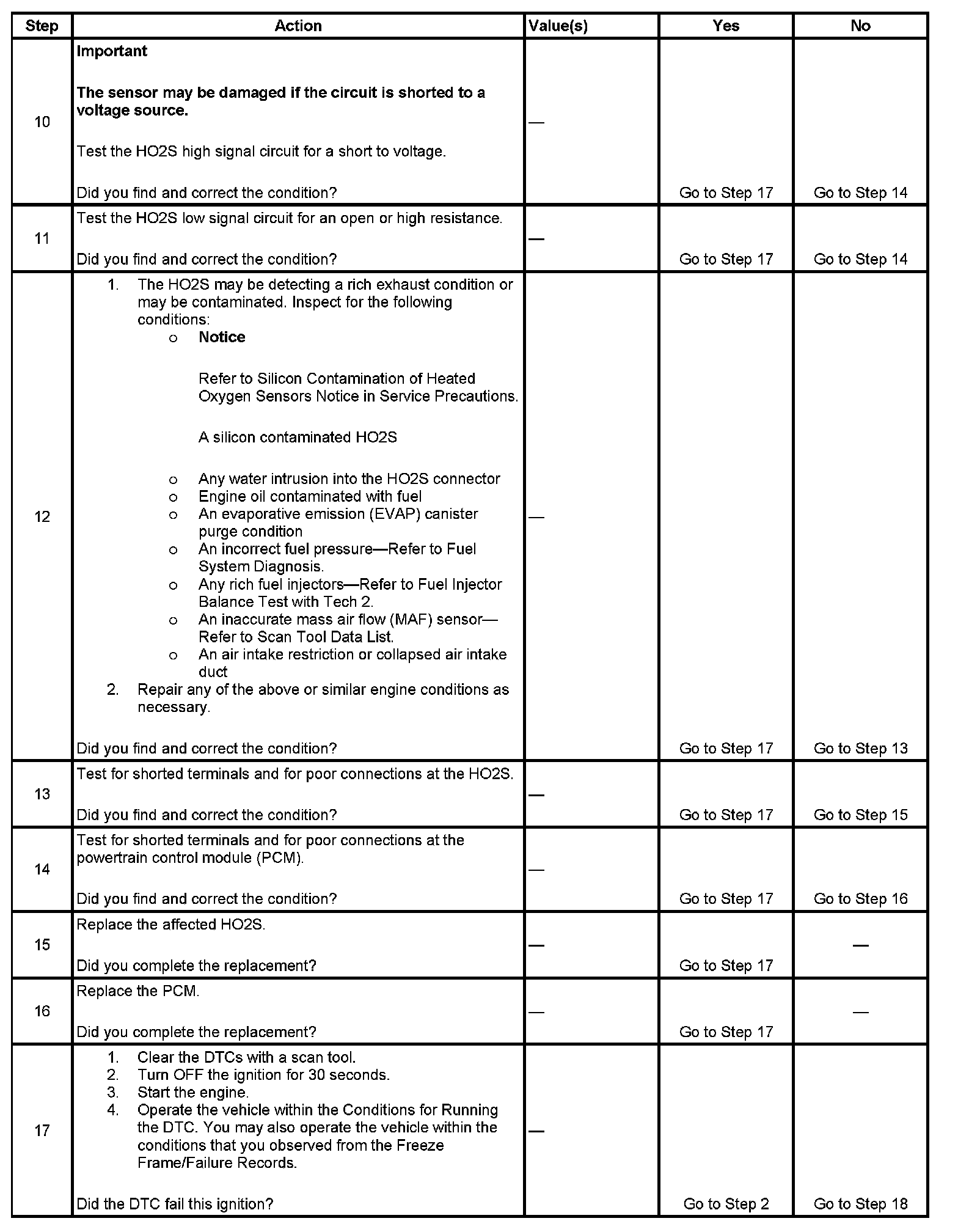 Decel Fuel Cutoff Test: The PCM detects that the affected HO2S voltage parameter is more than 540 mV for 5 seconds.