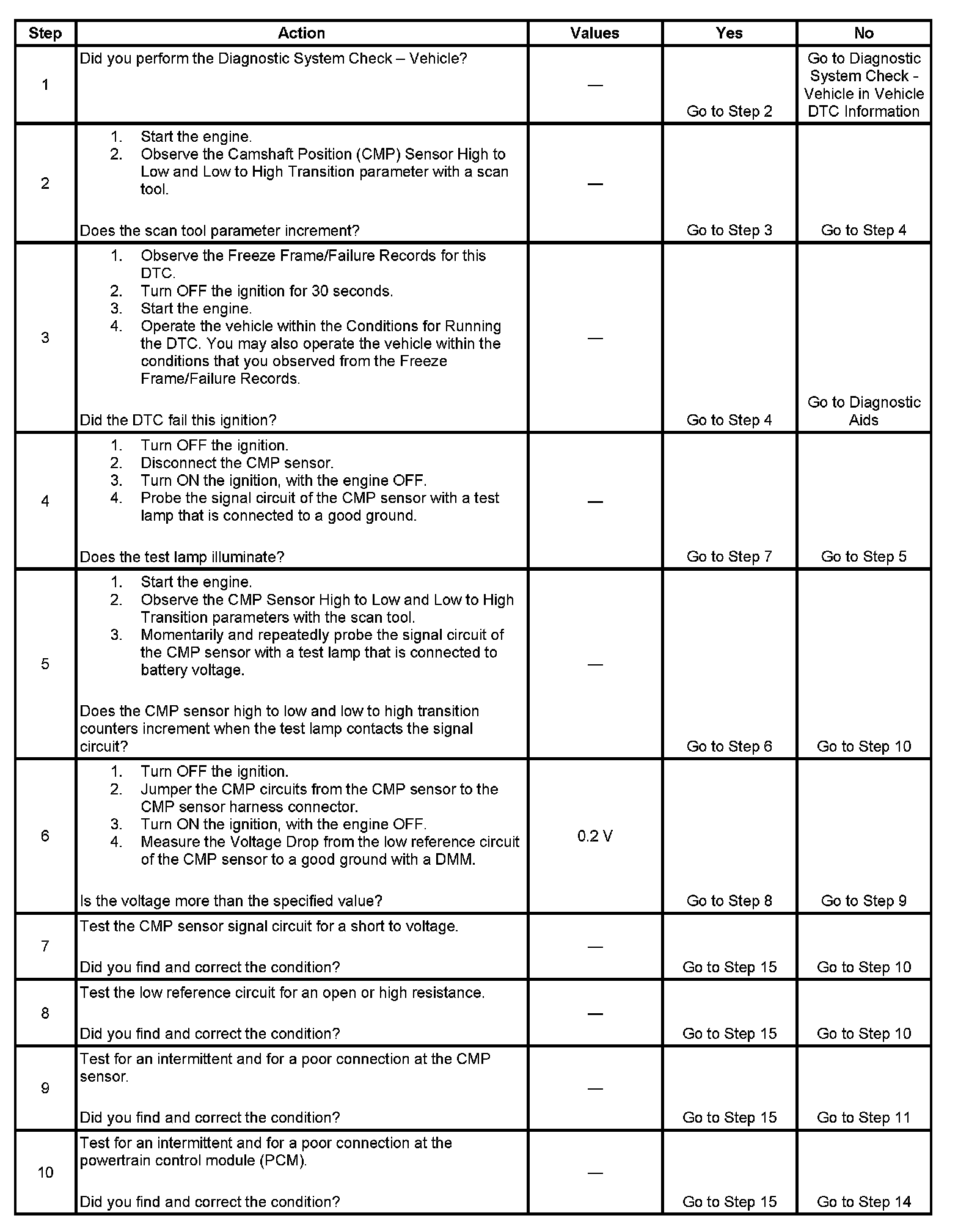 The camshaft position (CMP) sensor works in conjunction with a 1 X reluctor wheel on the camshaft. The powertrain control module (PCM) provides a 12-volt reference to the CMP sensor as well as a low reference and a signal circuit.
