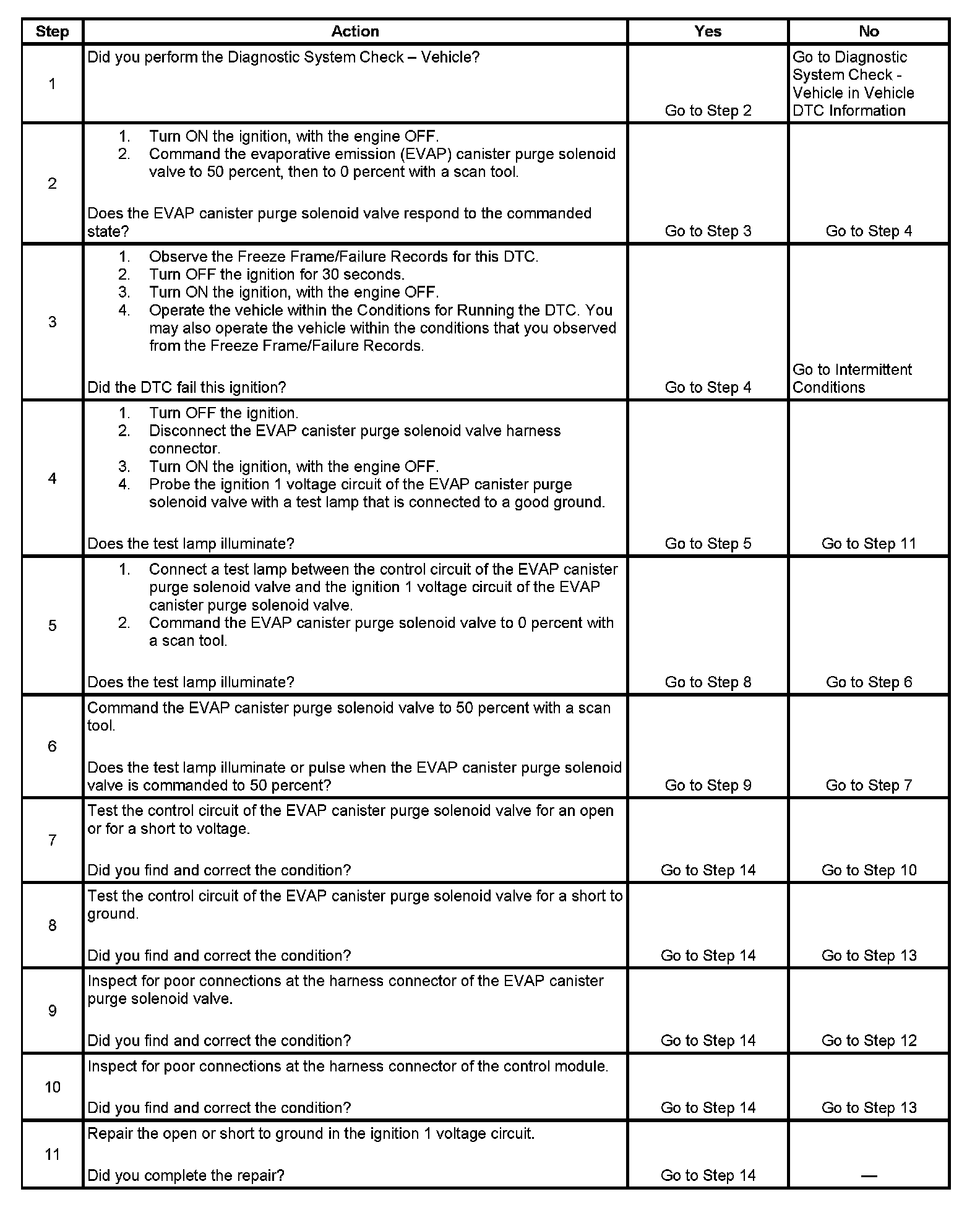 6. This step tests if a ground is constantly being applied to the EVAP canister purge solenoid valve.