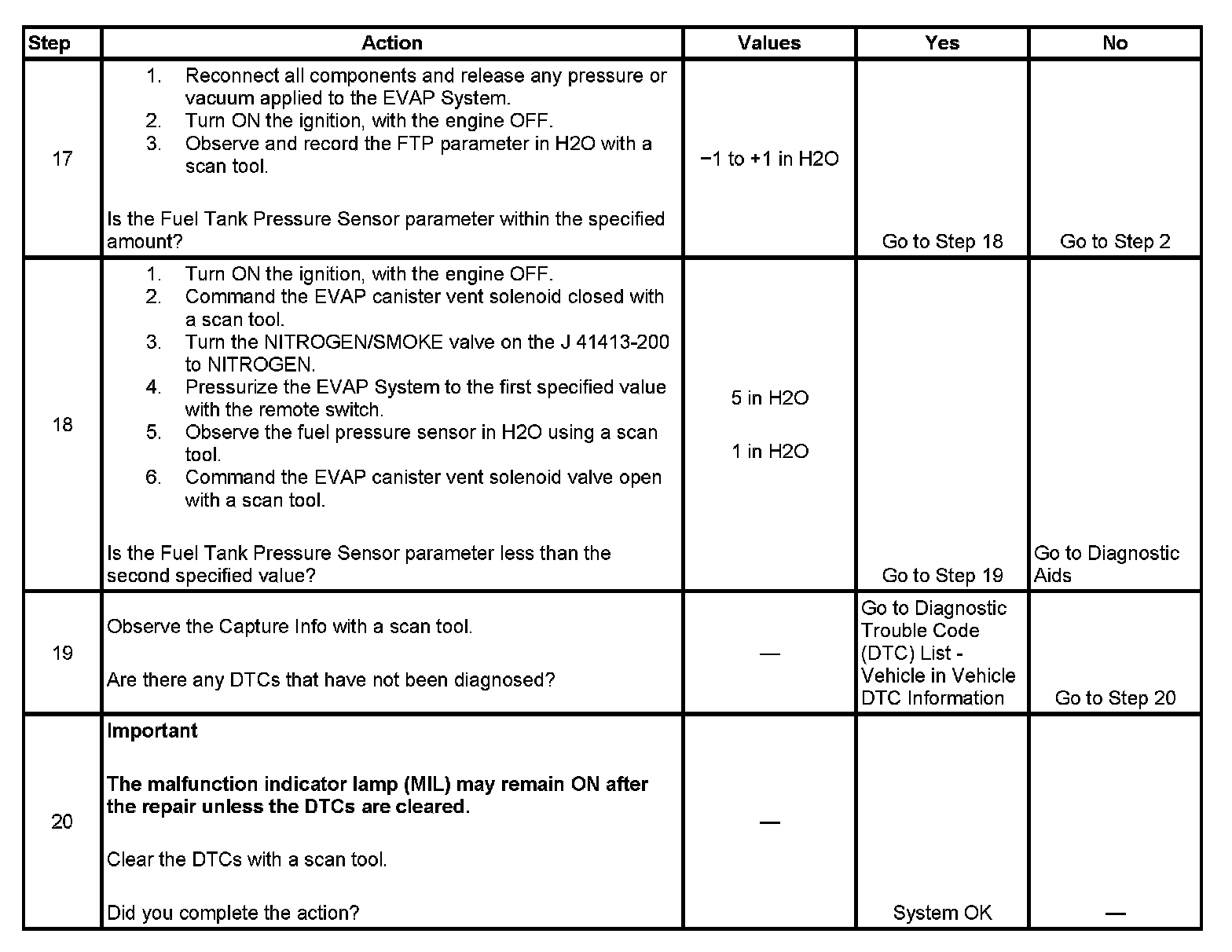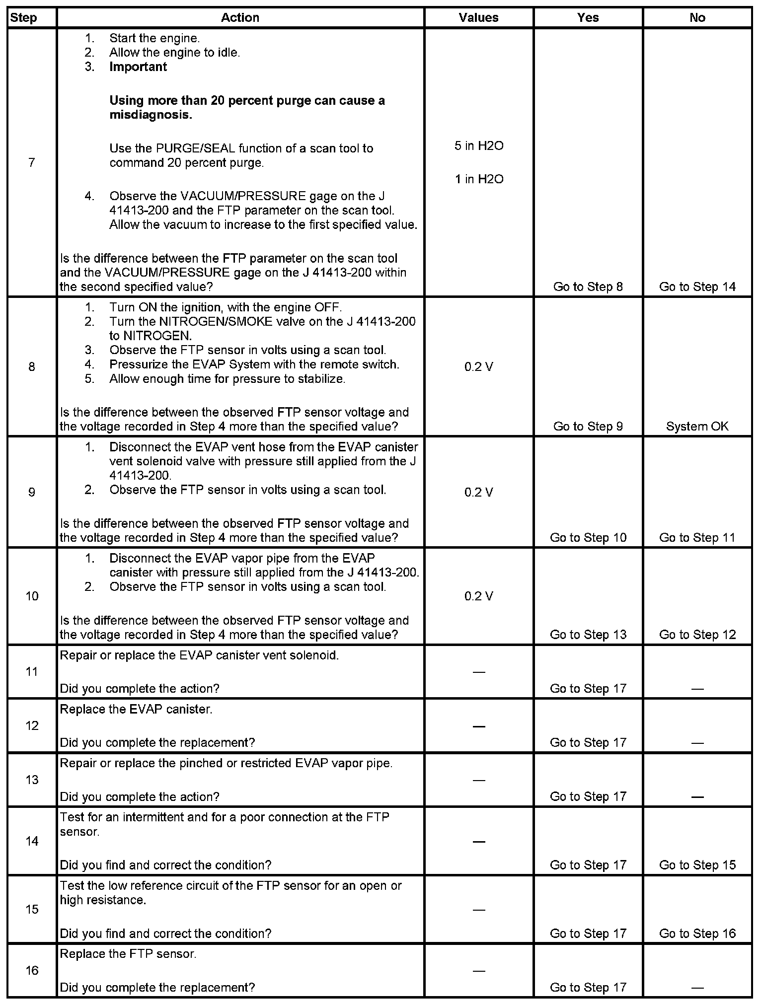 - A restriction in the EVAP canister or vent lines could prevent fuel vapor pressure from bleeding off fast enough. If the vent system cannot bleed off pressure fast enough, this code can set. When pressure is applied to the system and released, a properly operating system will return to the atmospheric pressure rapidly. By using a scan tool and the J 41413-200 pressure can be applied to the system, then released, while monitoring the FTP Sensor parameter to see that pressure can be released within 30 seconds.