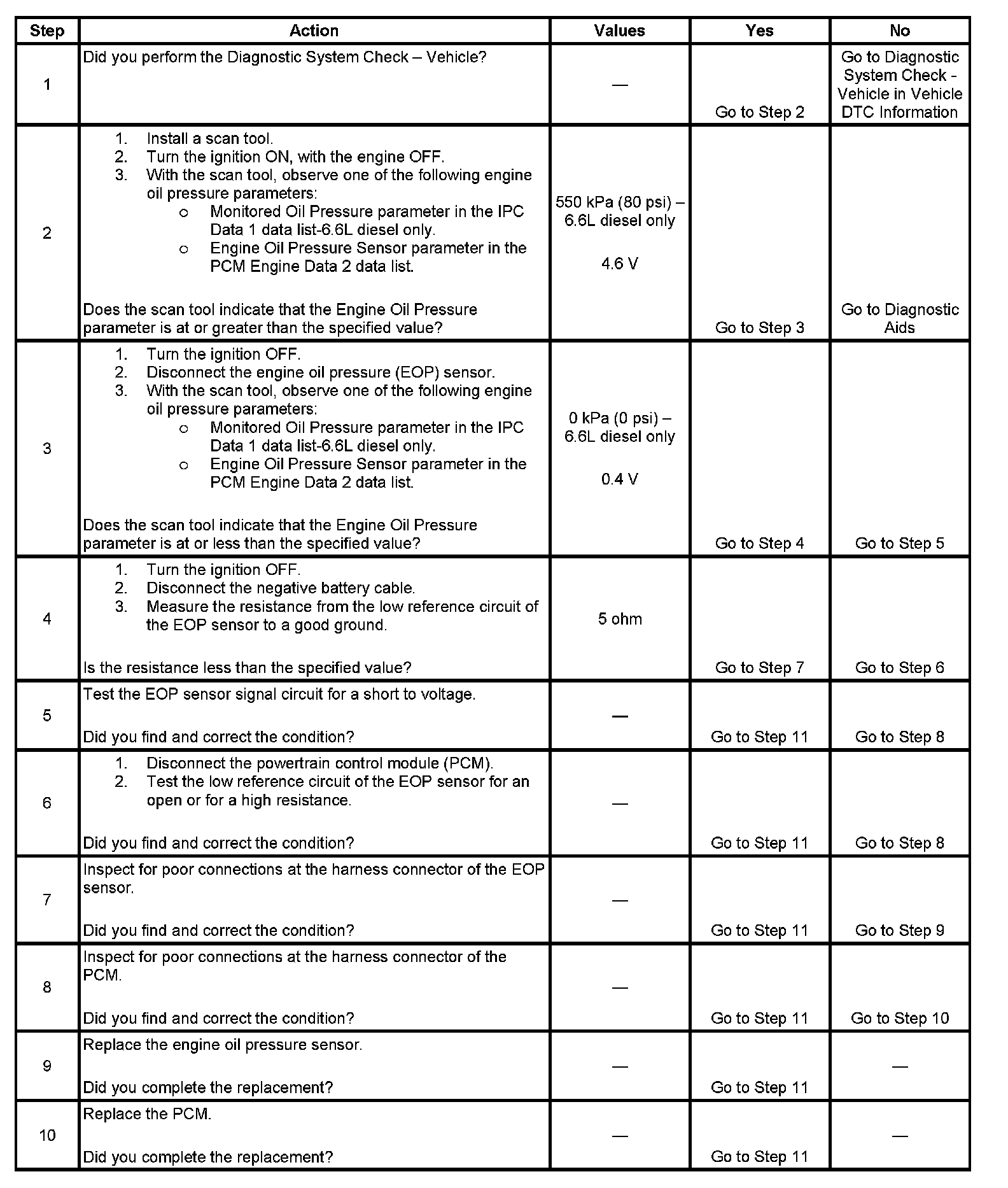 - The PCM detects that the EOP sensor signal circuit is greater than 4.6 volts.