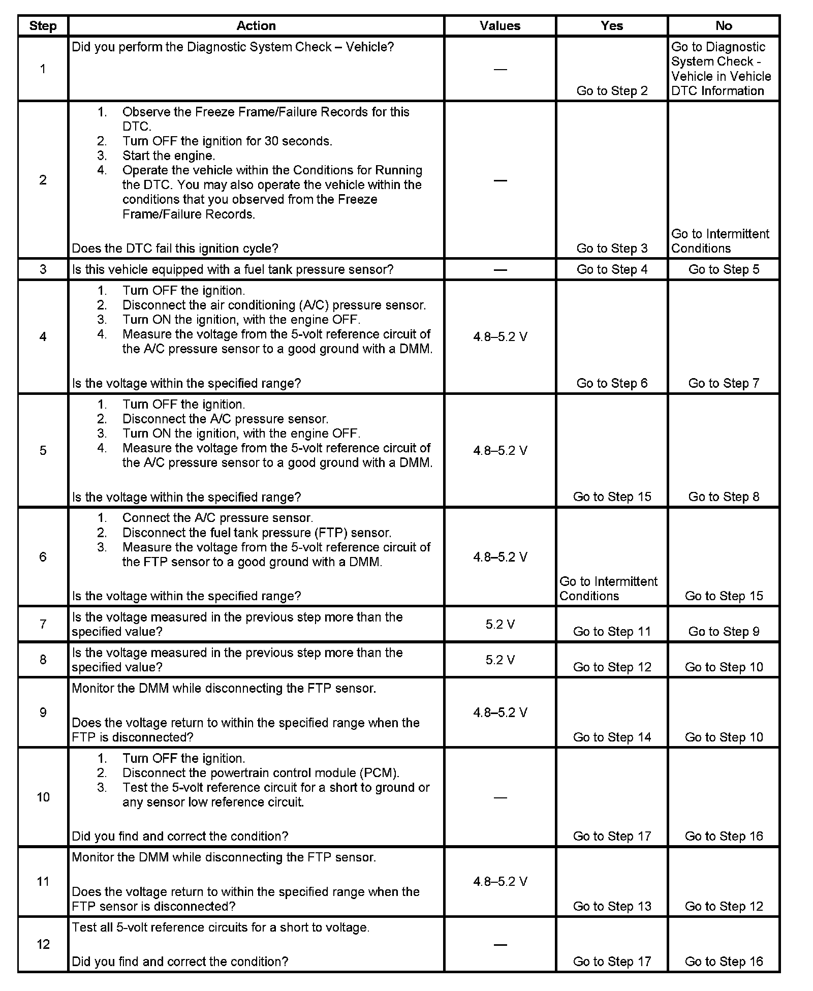 The PCM detects a voltage out of tolerance condition on the 5-volt reference circuit for more than 2 seconds.