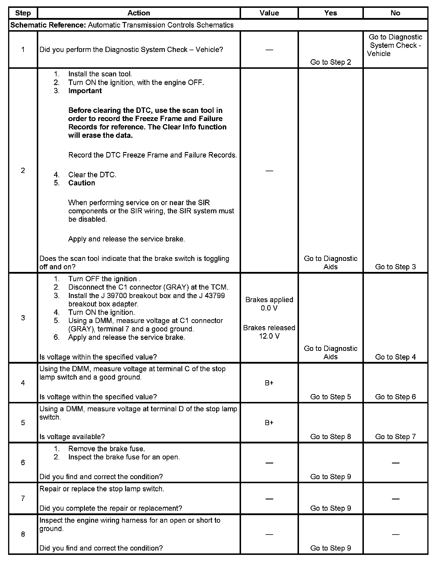 ^ DTC P0703 will be stored in TCM history.