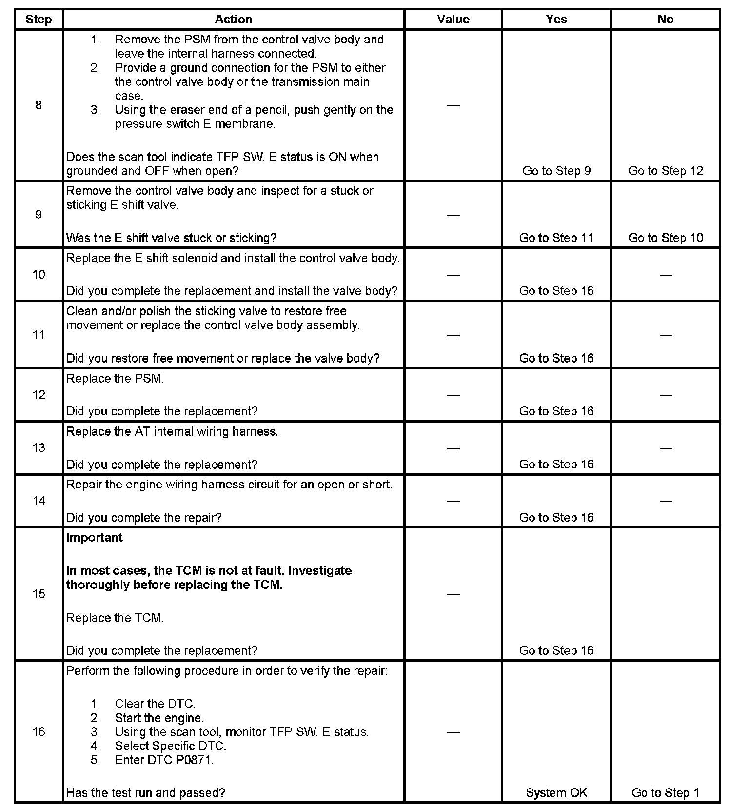 ^ DTC P0871 will be stored in TCM history.