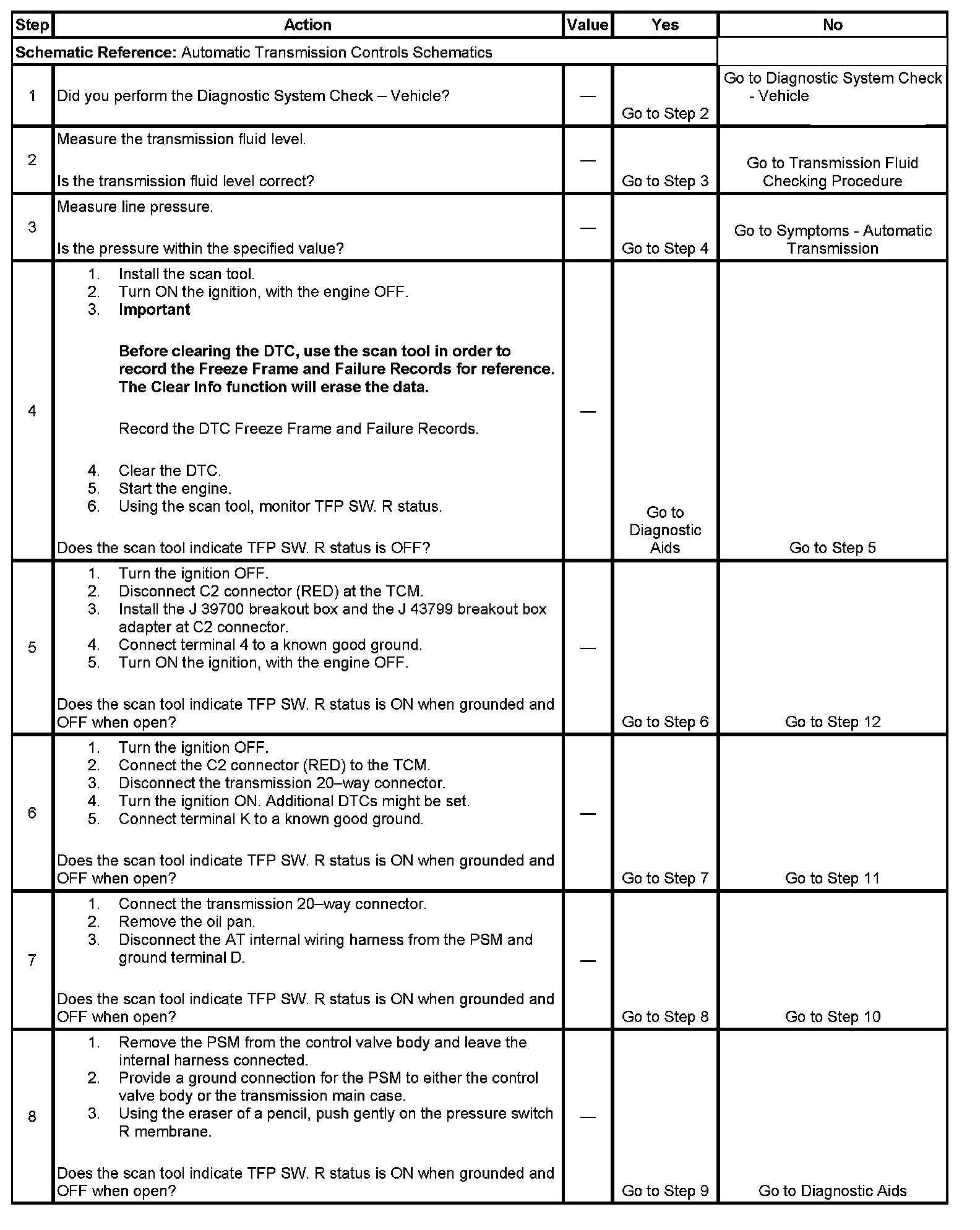 DTC P0876 Reverse Pressure Switch Circuit Stuck Open