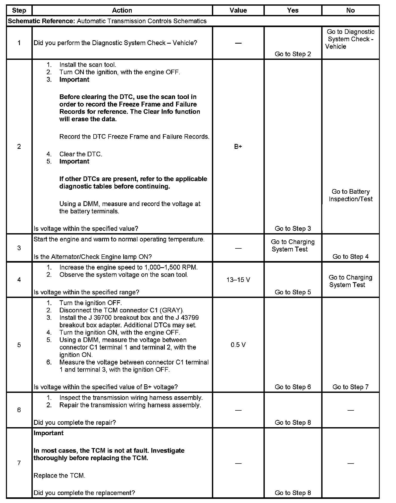 ^ Inspect the wiring for poor electrical connections at the TCM. Inspect for the following conditions: